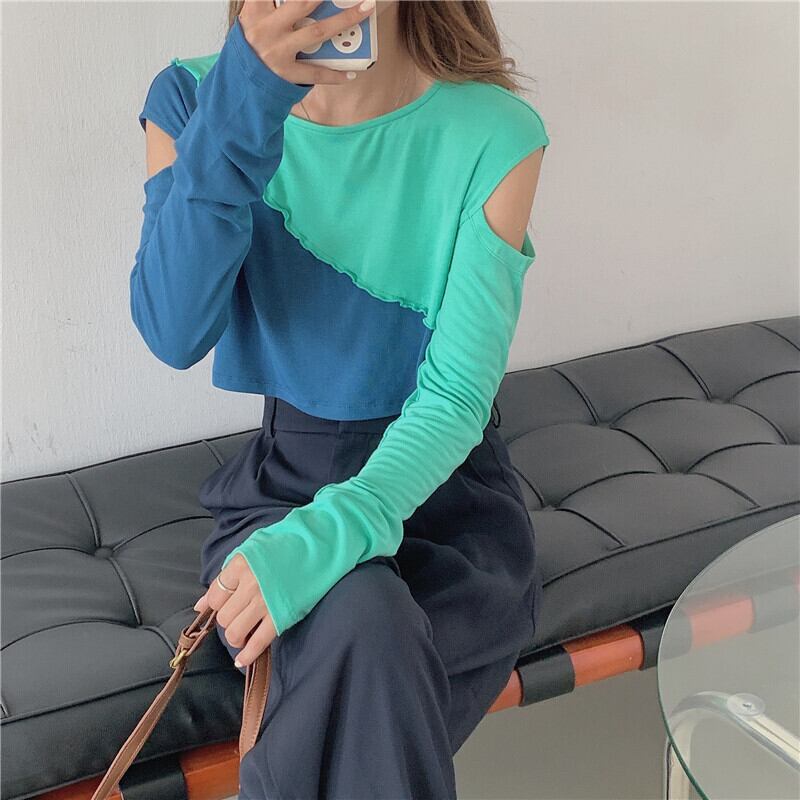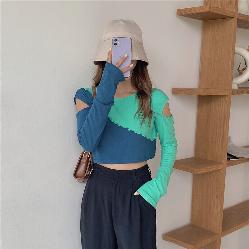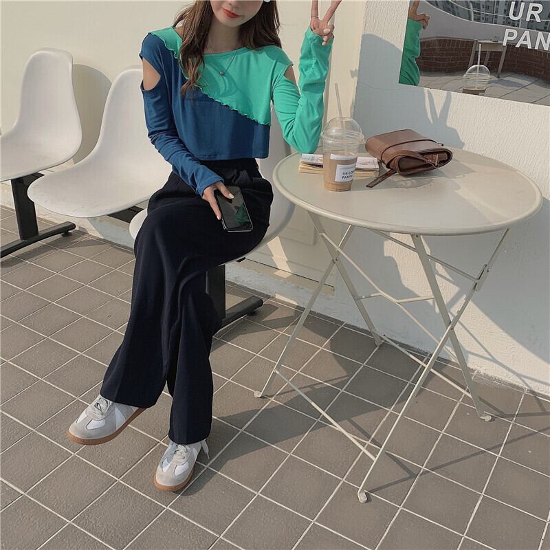 2020年新作秋のオフショルダートップス女子学生スリムボトミングシャツ クレセントシティ11029040735
