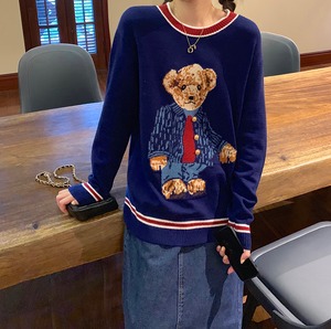 ルーズキュートなベアプリントセーターレディース2020年初秋新作ルーズトップ+ Vネックアウターベストトレンド クレセントシティ5468660964