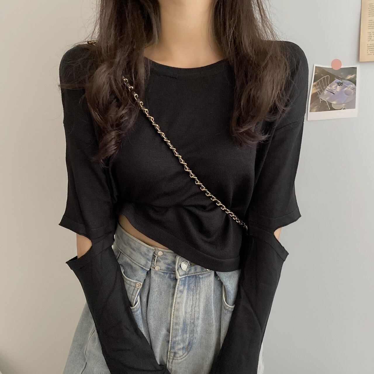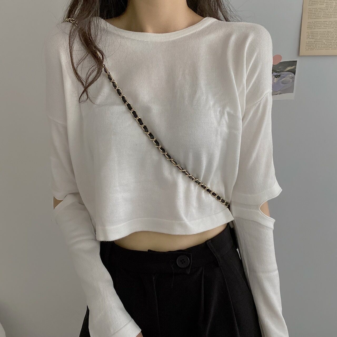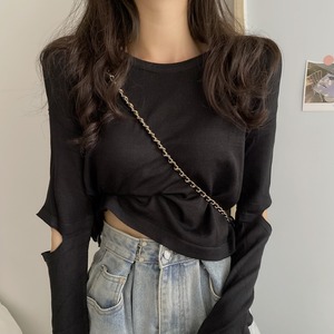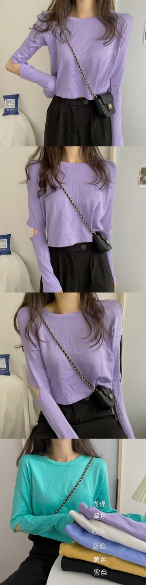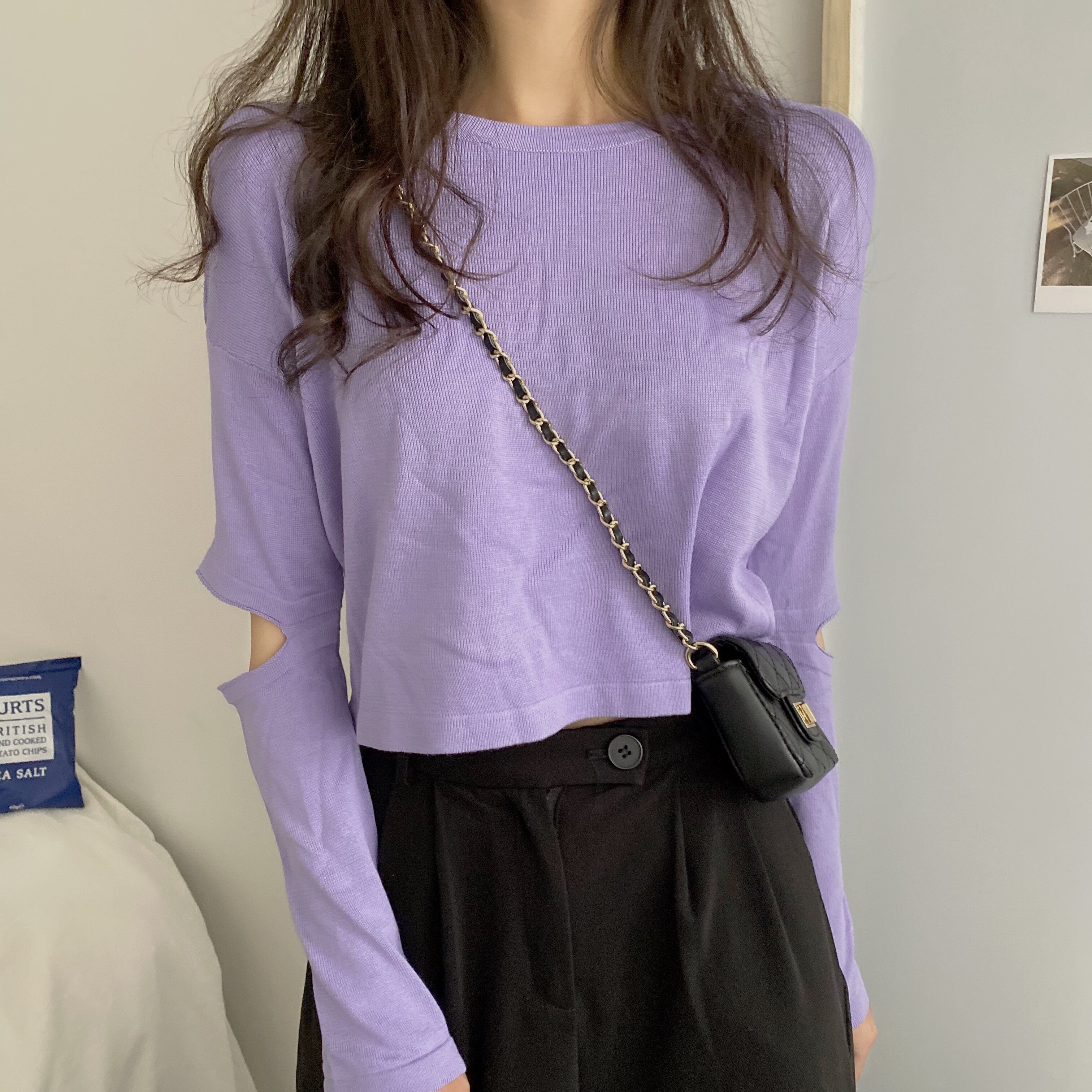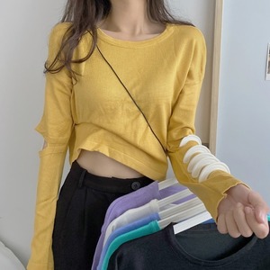 秋のデザインセンスルーズホローニットセーター薄身女性2020新バージョンショートセクション薄無地トップトレンド クレセントシティ28695362002