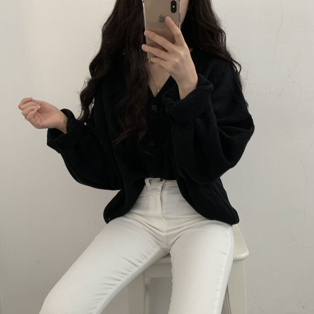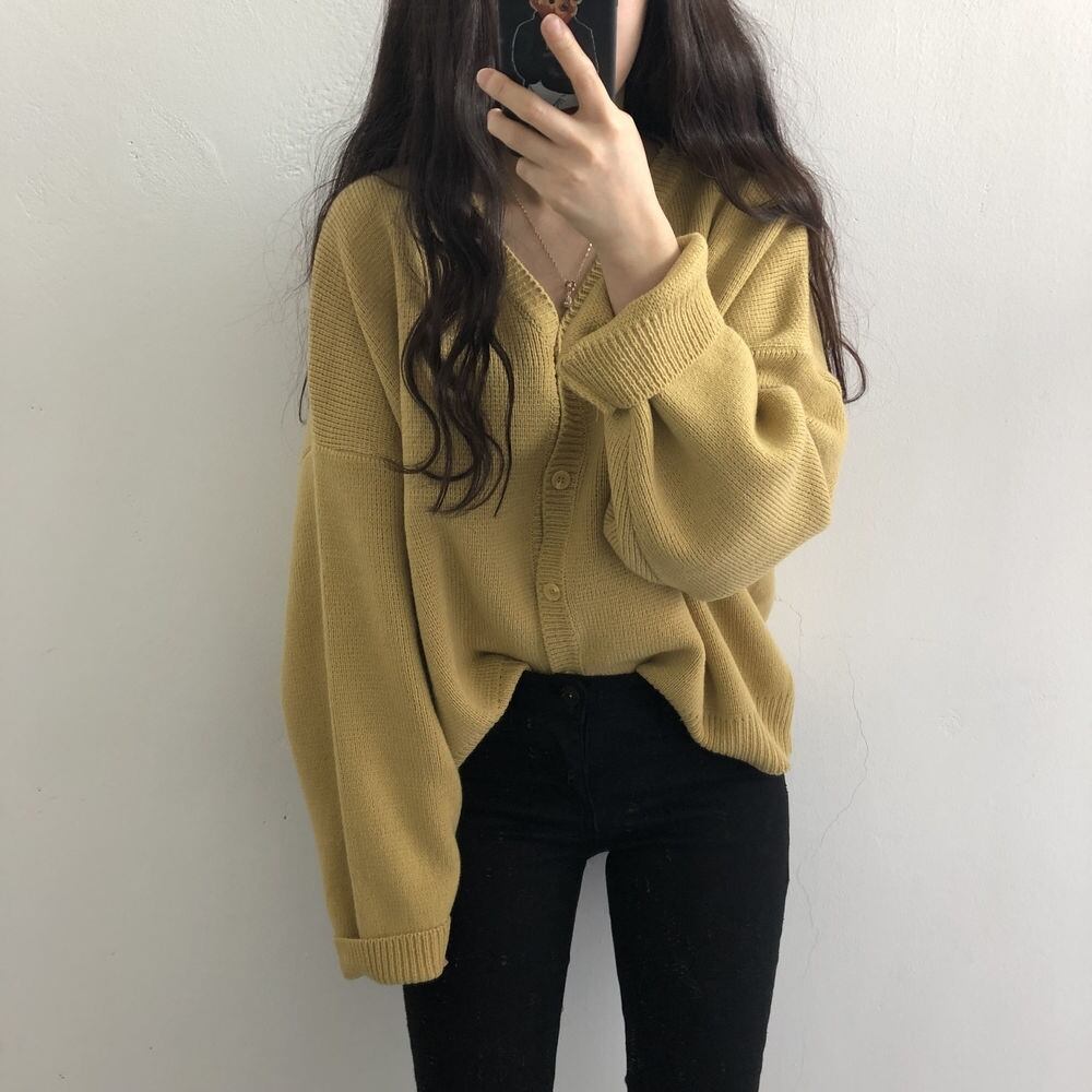 シックなセーターの女性の2020年初秋新入生カジュアルルーズVネックミドル丈ニットカーディガンジャケット クレセントシティ17298516492