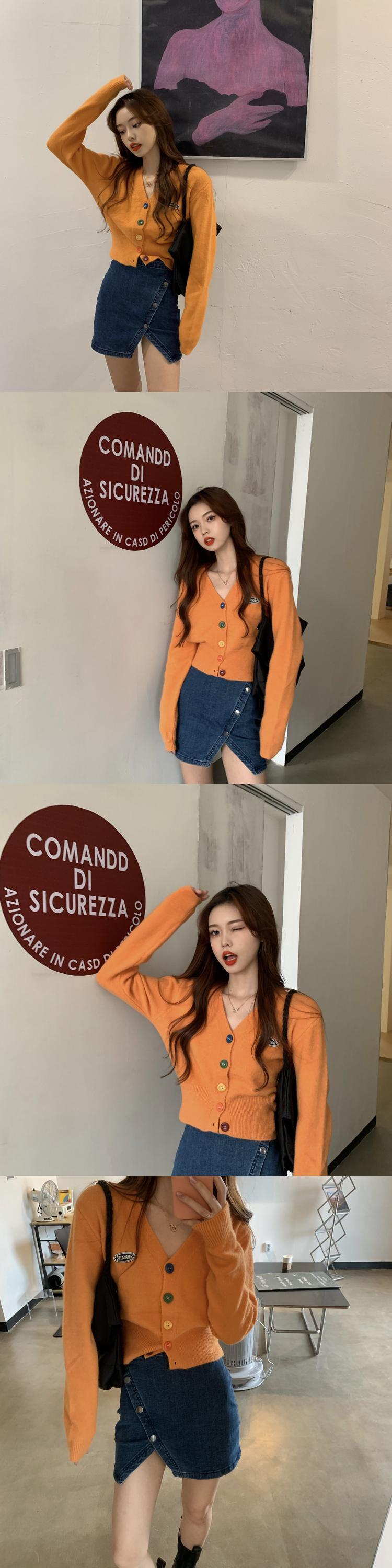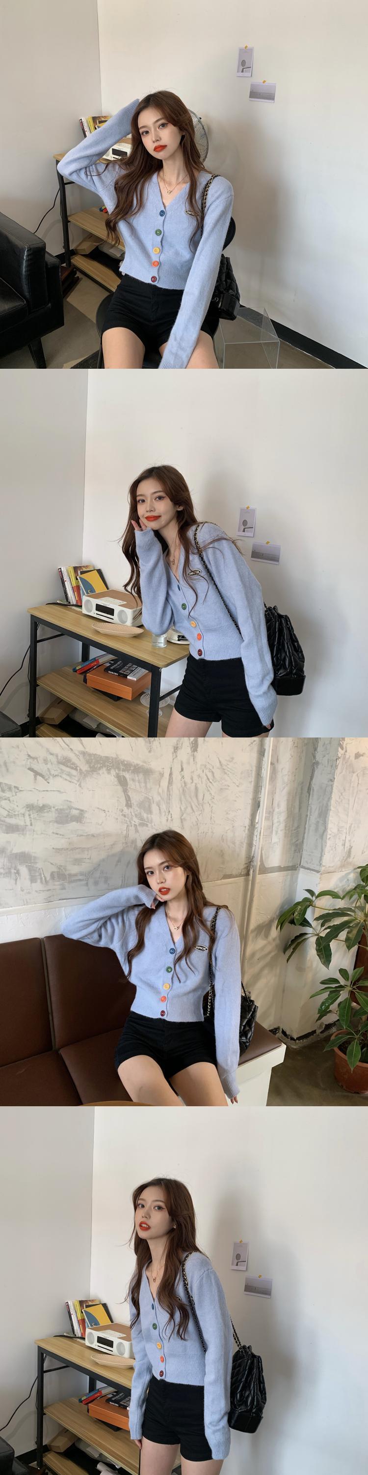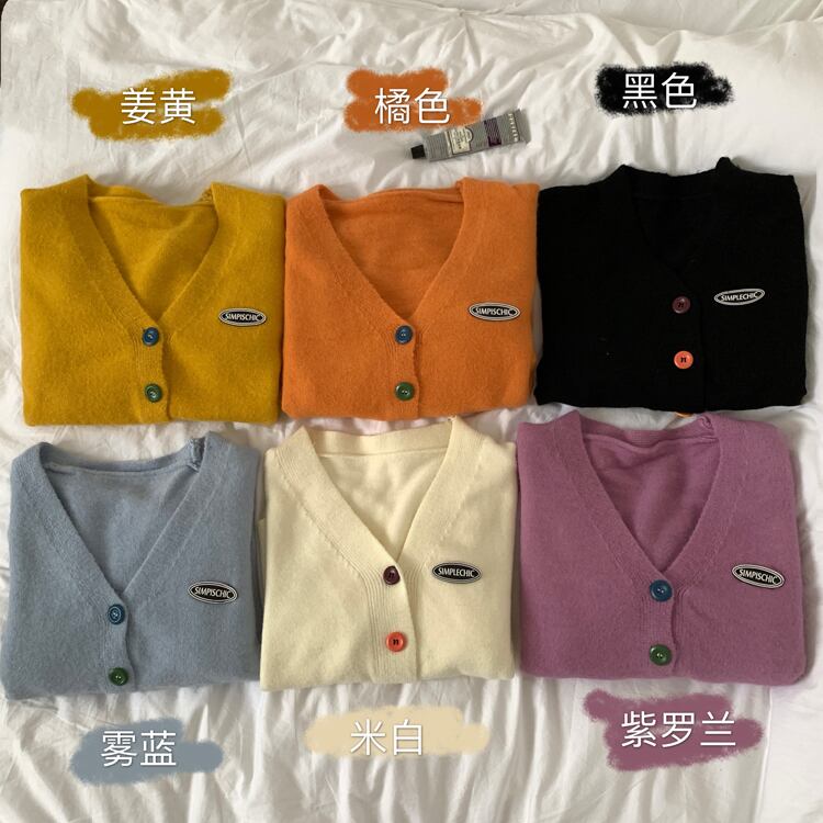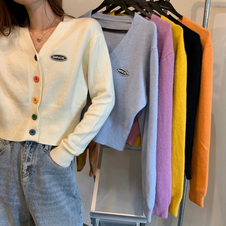 セーター女性の2020年初秋新しいレインボーボタンデザインセンスバージョンの甘いルーズVネックショートニットセーターイン クレセントシティ57425337610