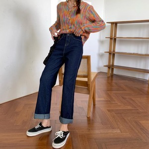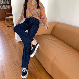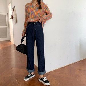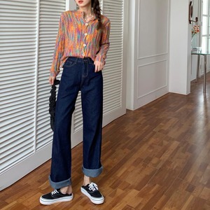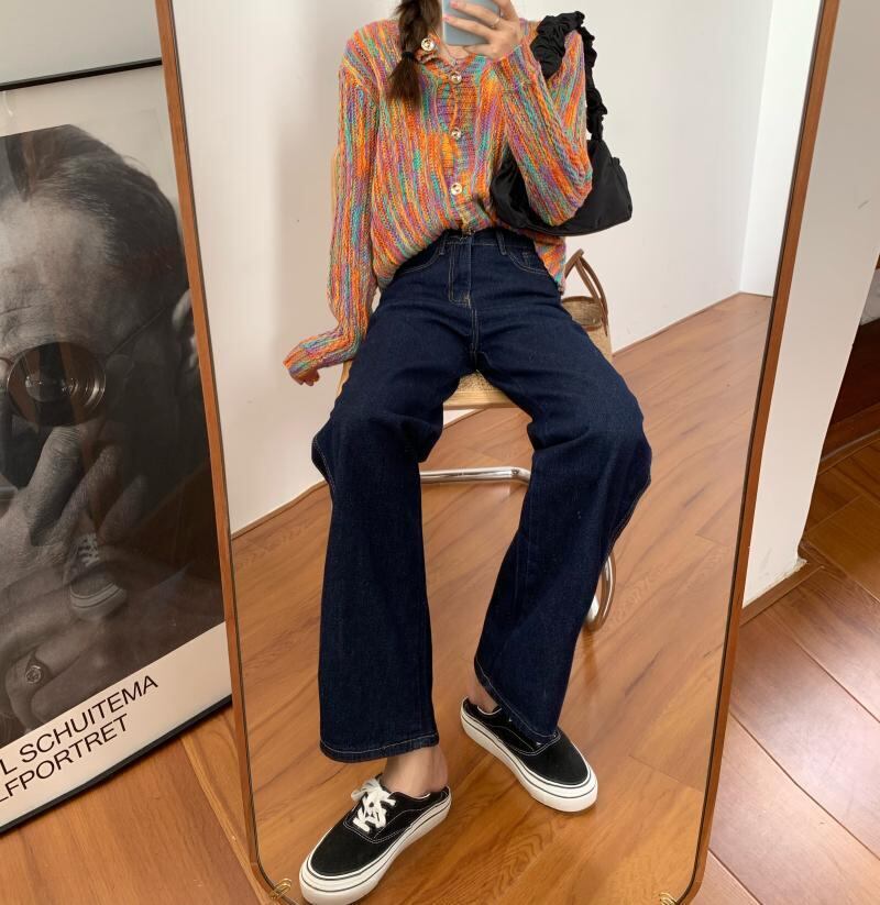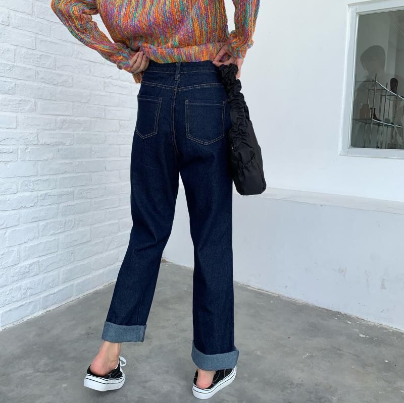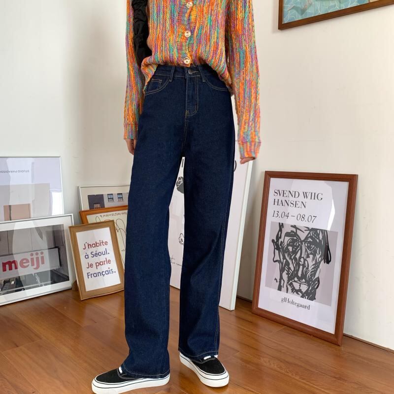 レトロブルーのハイウエストジーンズレディース2020年初秋新バージョンのルーズで薄いストレートワイドレッグパンツトレンド クレセントシティ97532661506