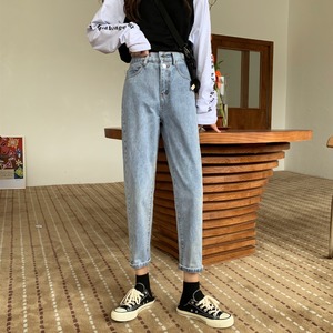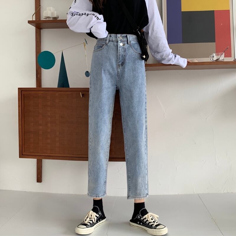 ライトブルージーンズレディース2020ニューバージョンのハイウエストルーズで薄い秋の小さなセミエラスティックストレートパンツ クレセントシティ35956220196