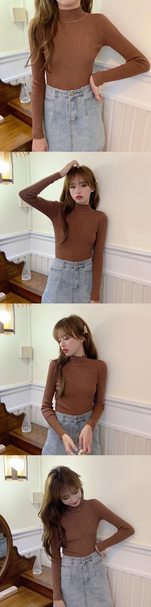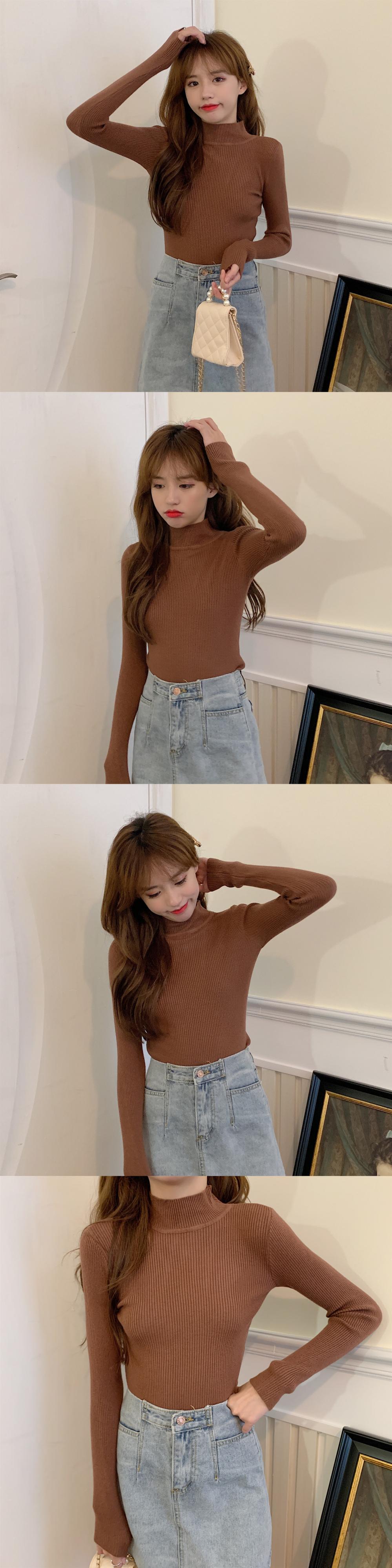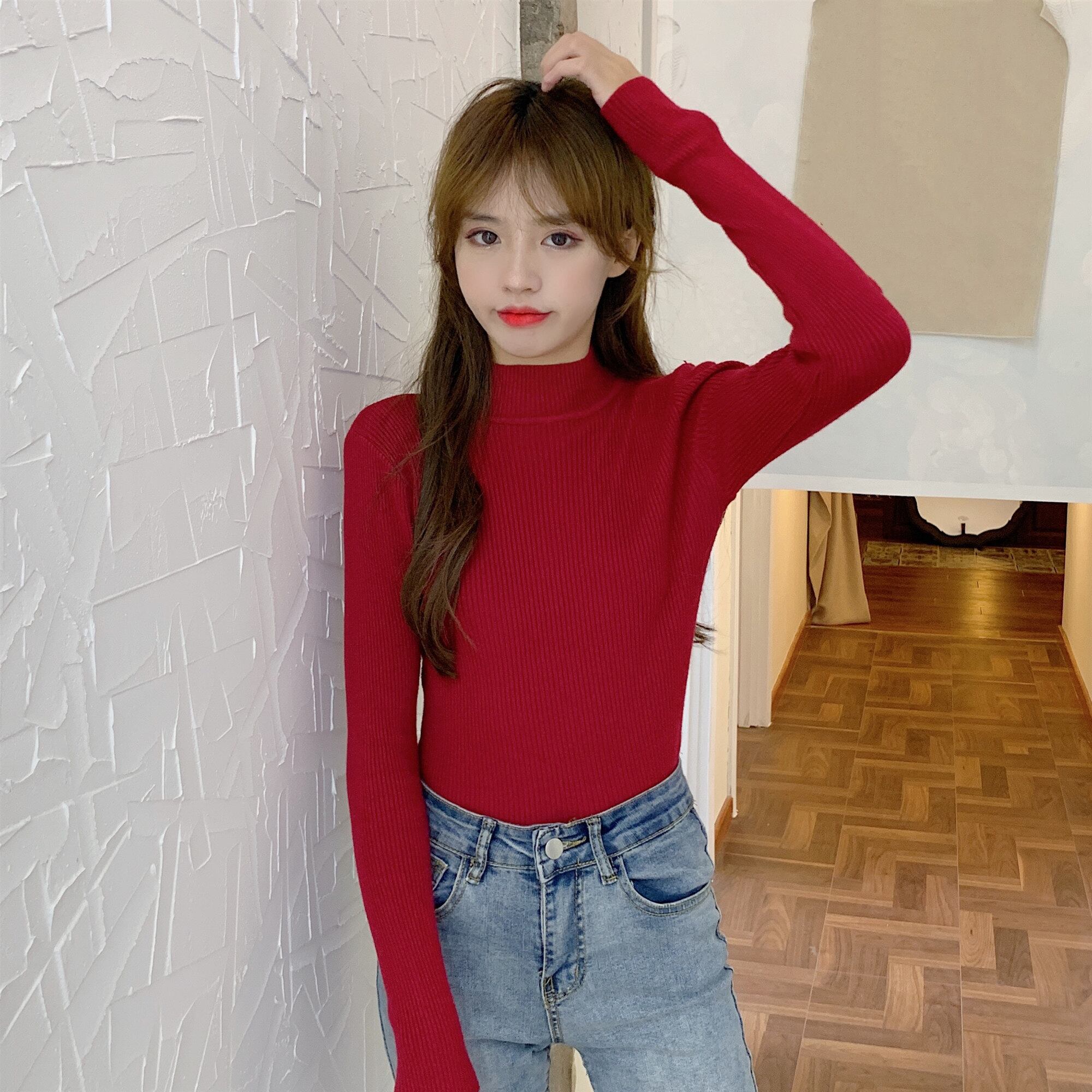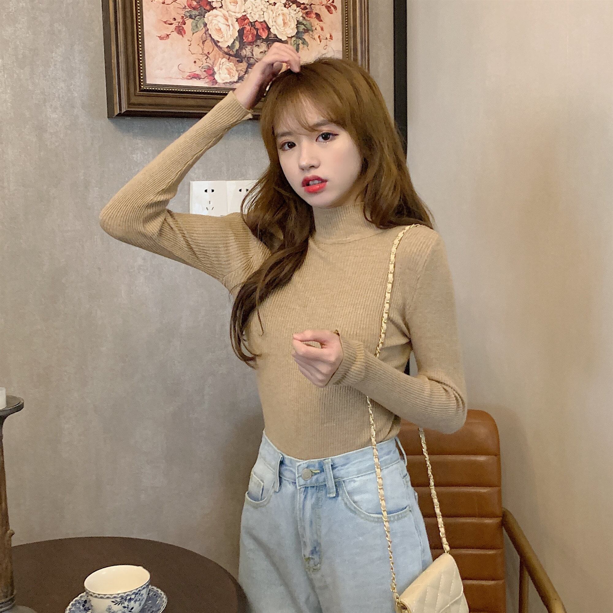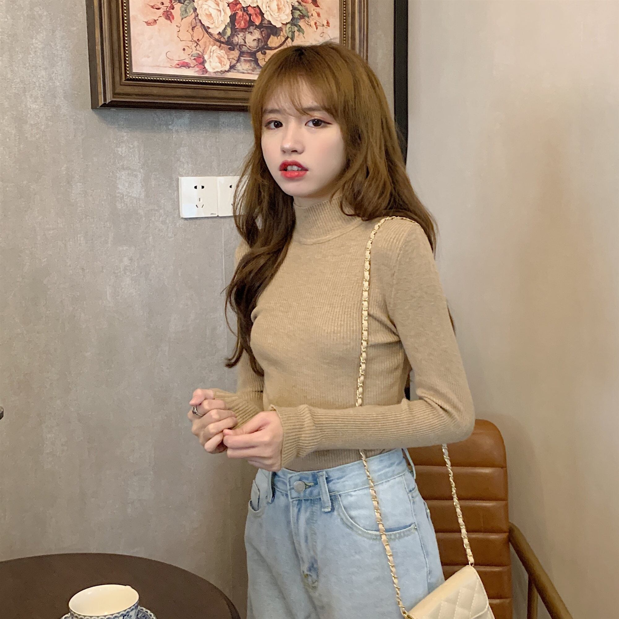 ハーフハイカラーボトミングシャツレディースオータムウェア2020新バージョンの薄くて用途の広い無地の長袖セータートップ クレセントシティ25699458668