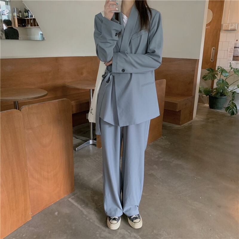 スーツ女性の2020年初秋新作スタイルのレースアップデザインスーツ+ツーピースワイドレッグパンツ クレセントシティ47136595680