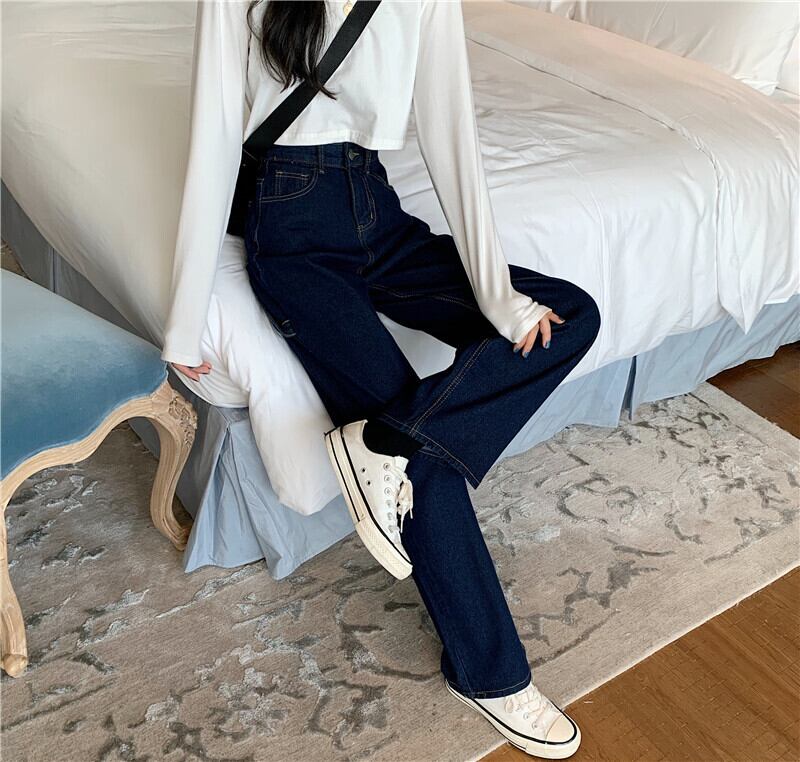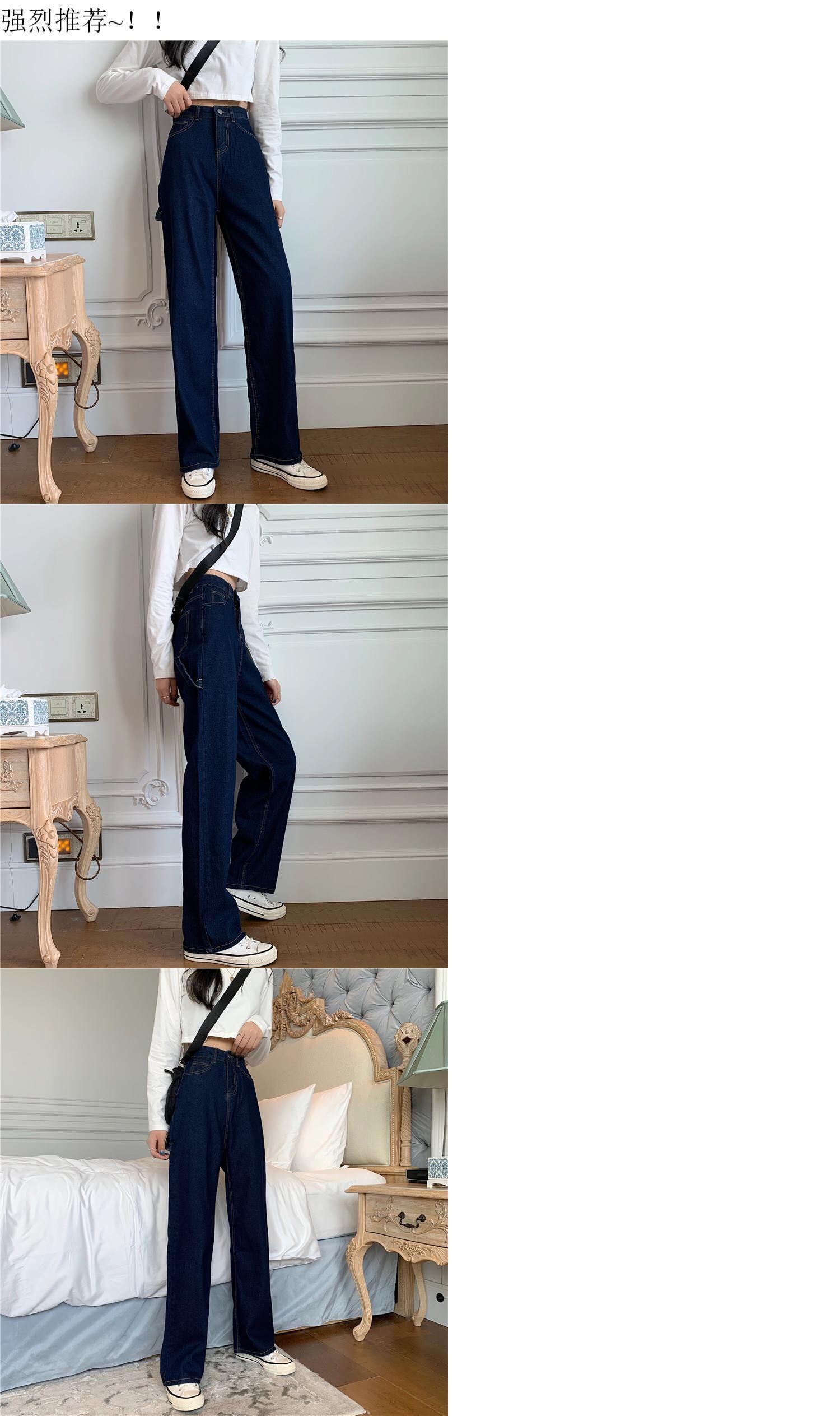 ジーンズレディース2020年秋レトロルーズワイドレッグパンツドレープハイウエストスリムストレートモップパンツの新バージョン クレセントシティ52983028282