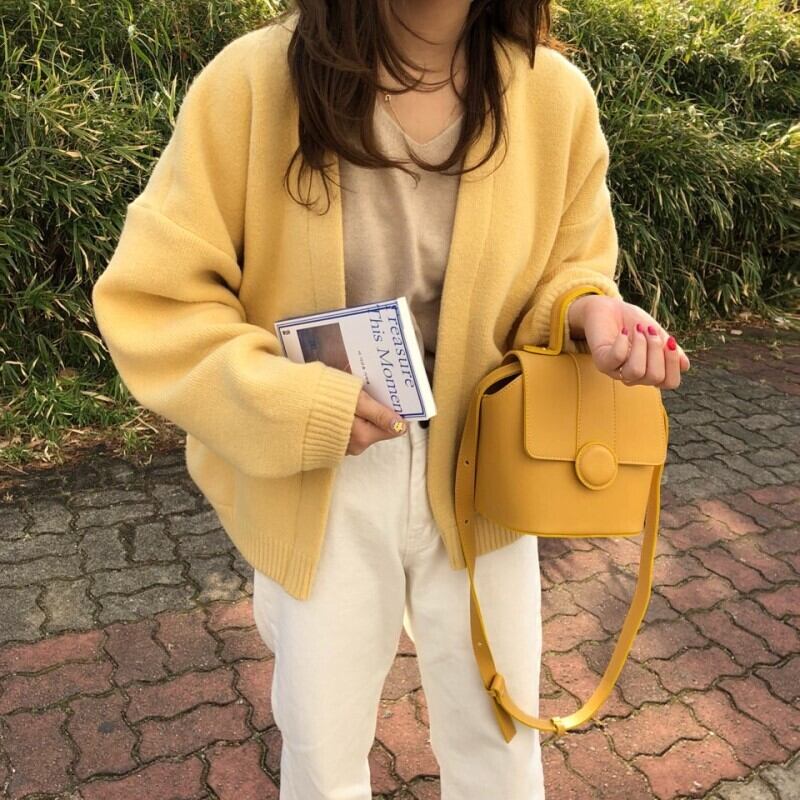イエローセータージャケットレディース2020年秋新バージョンルーズレイジースタイルアウトサイドニットカーディガントップトレンド クレセントシティ77044352508