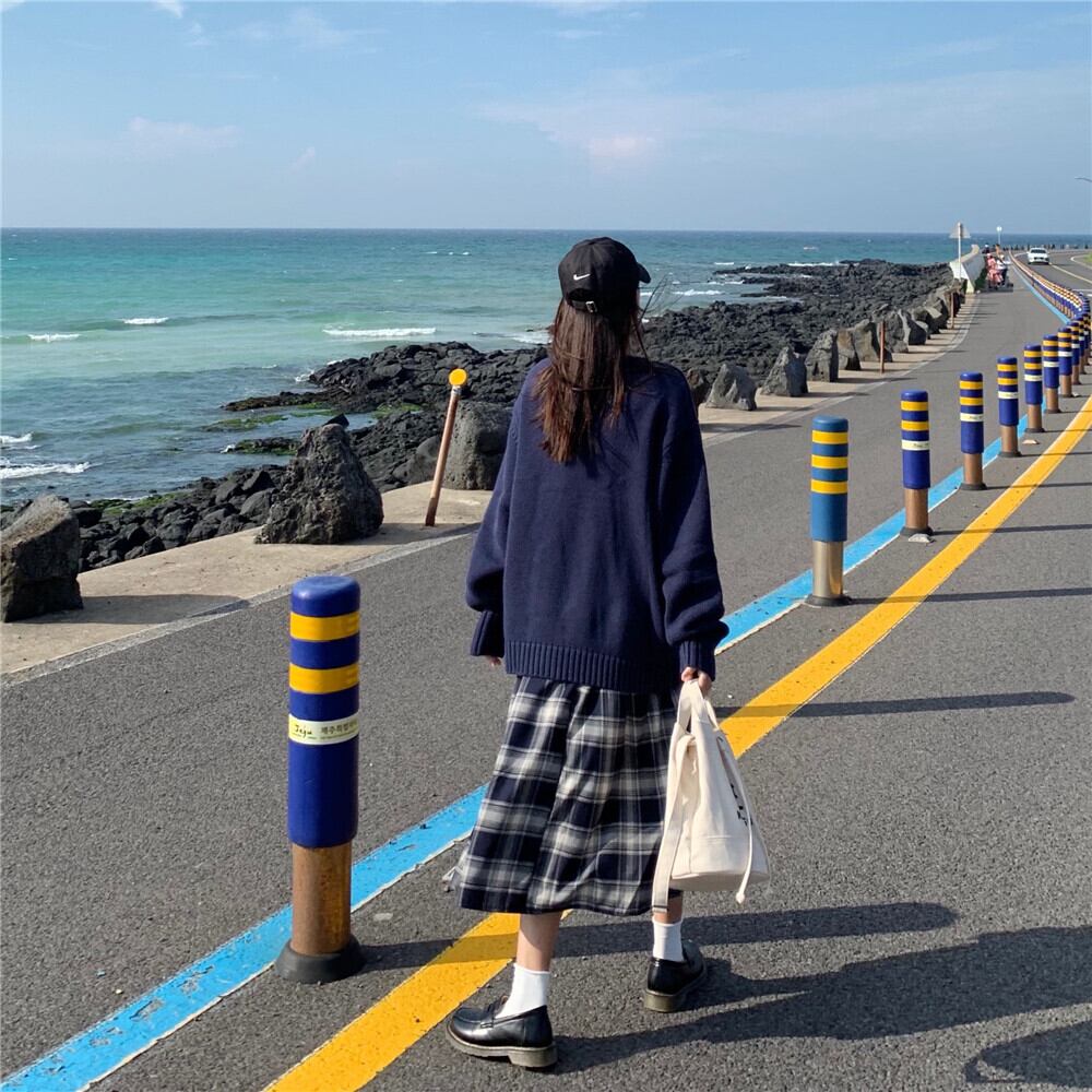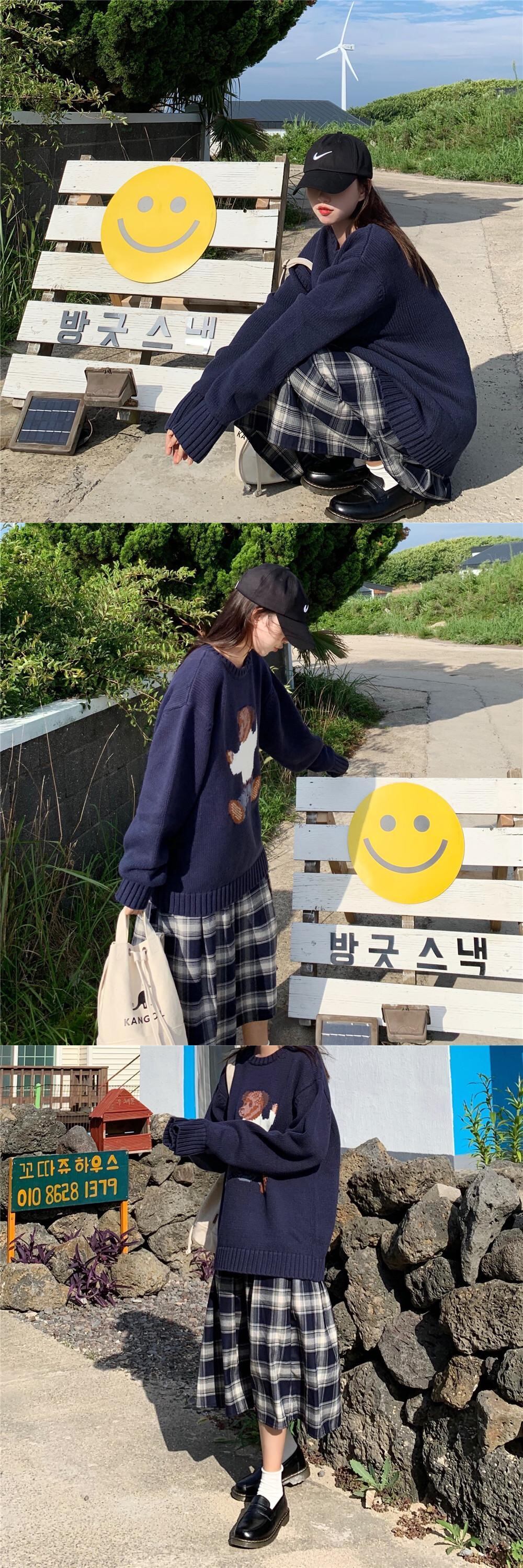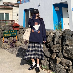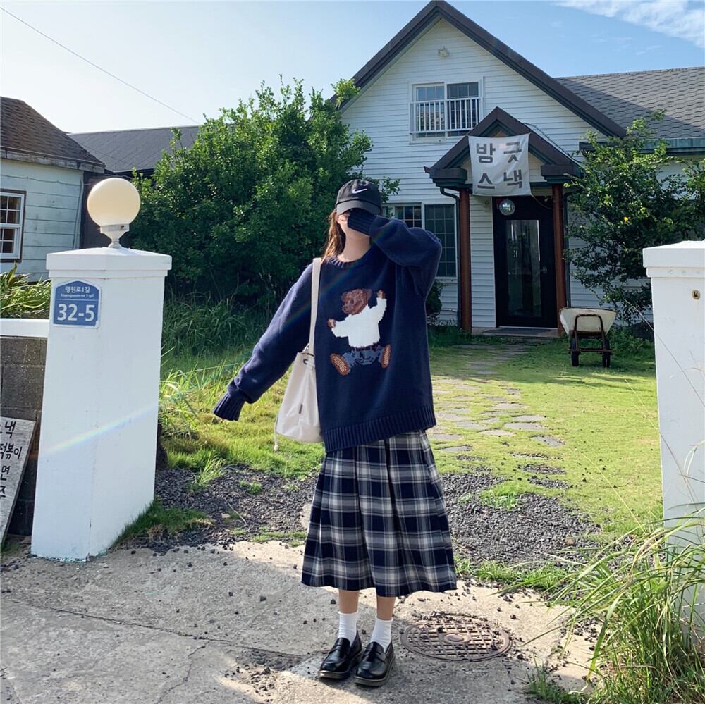 スーツ女性2020年初秋新バージョンルーズキュートベアセーター+レトロチェック柄Aラインスカート クレセントシティ87939515653