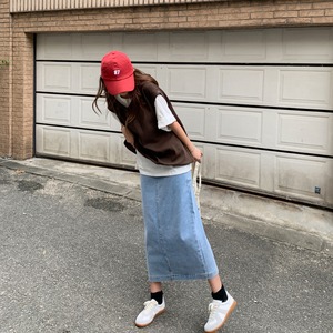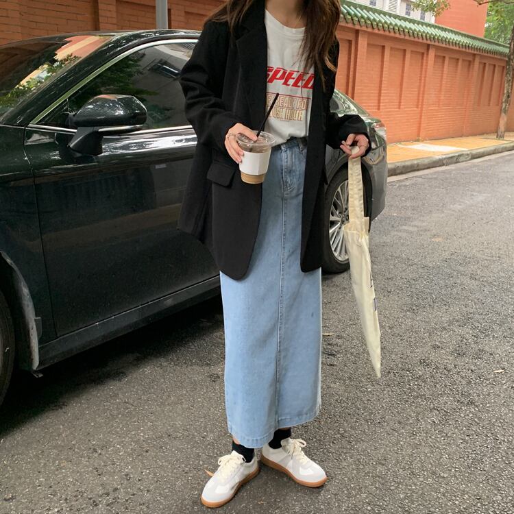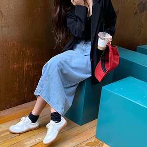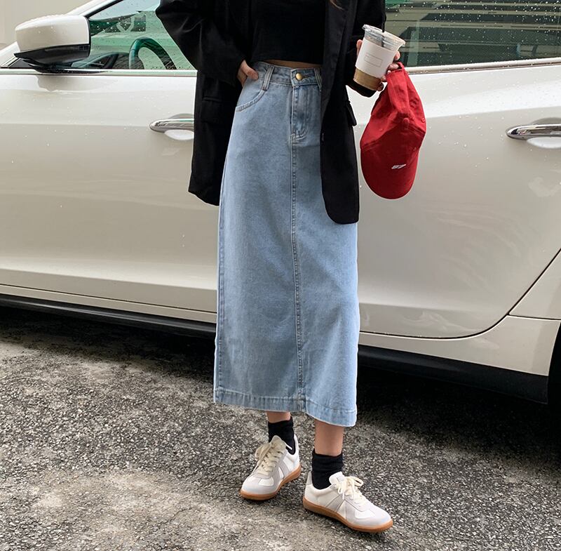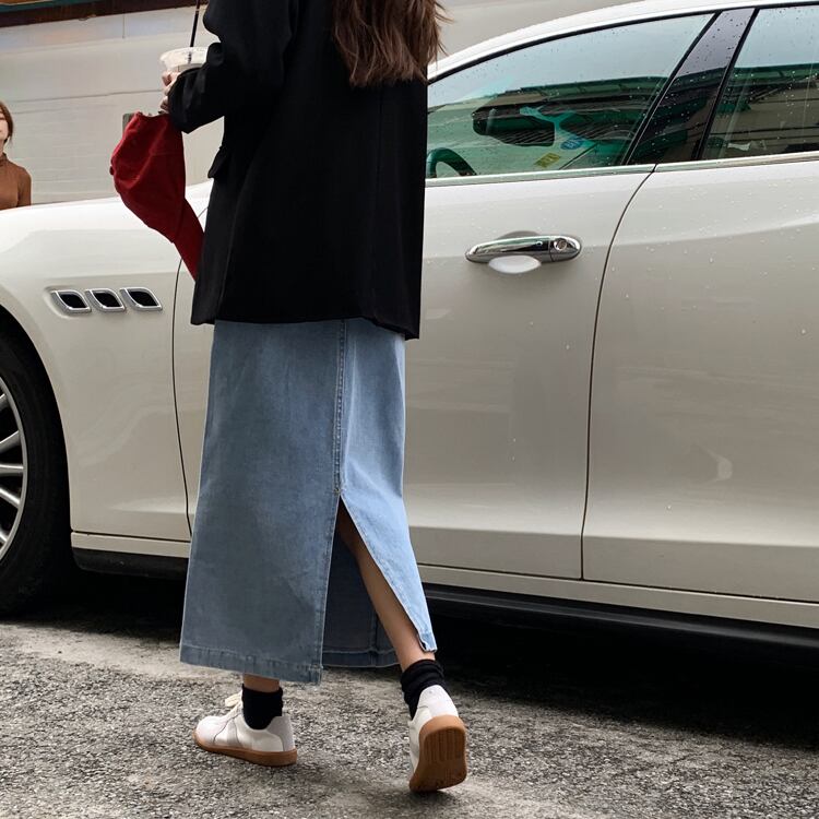 ウエストスリミングスプリットミドル丈Aラインスカート2020年秋新作オールマッチデニムスカート女子学生 クレセントシティ5785784135
