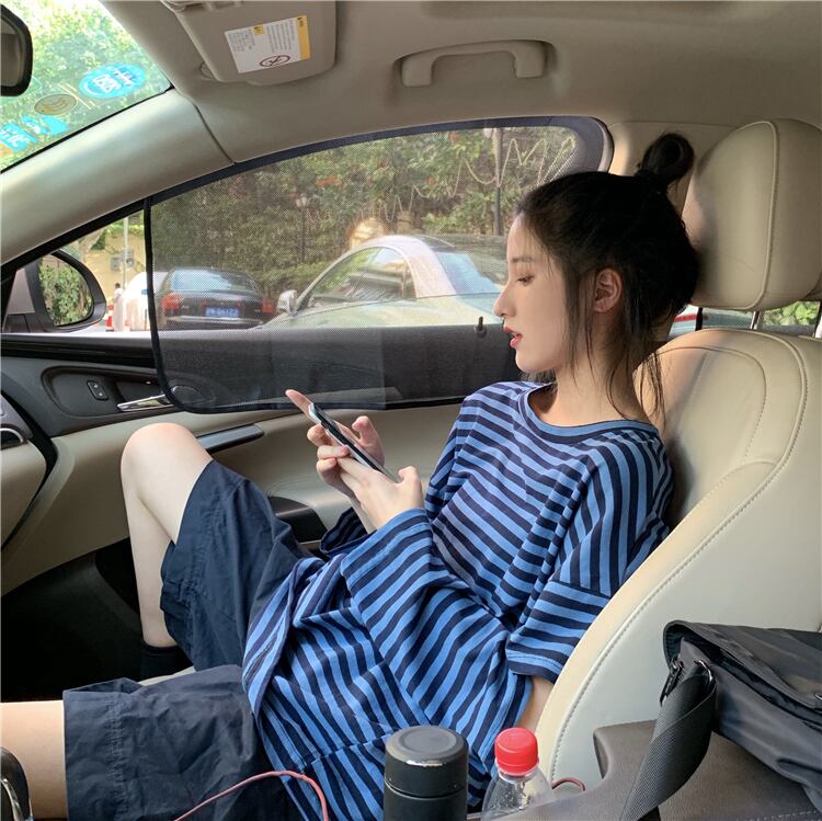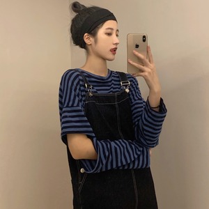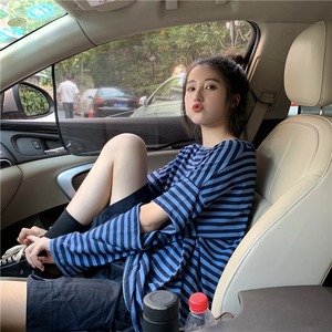 ブルーストライプの長袖Tシャツレディース2020年初秋新作中空デザインセンスルーズで薄いカジュアルトップス クレセントシティ75516689714