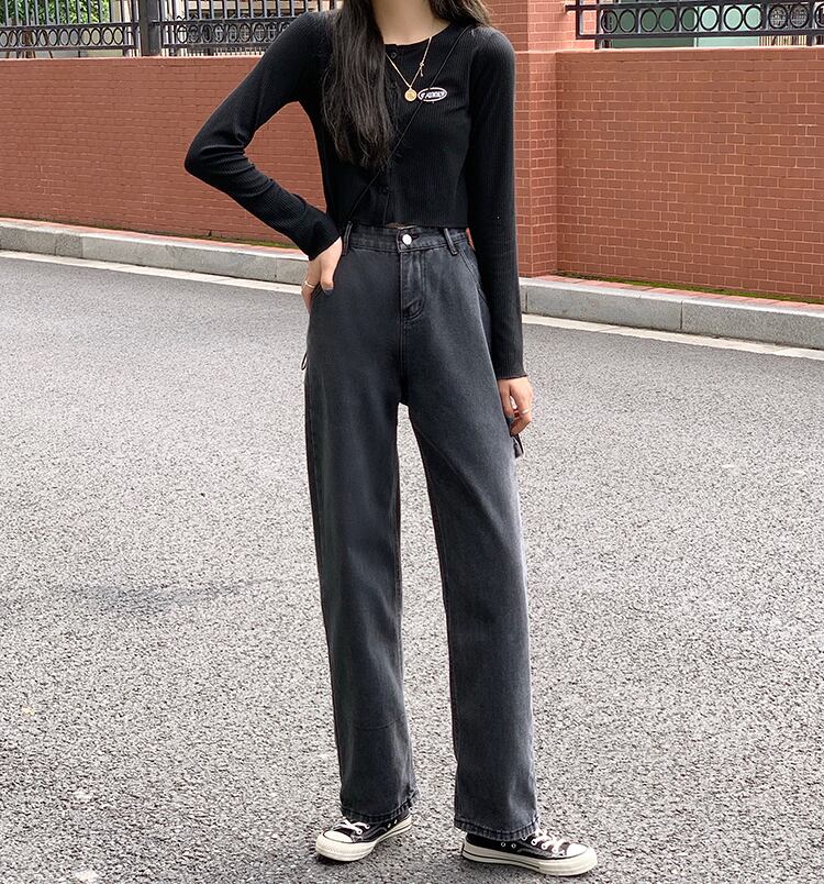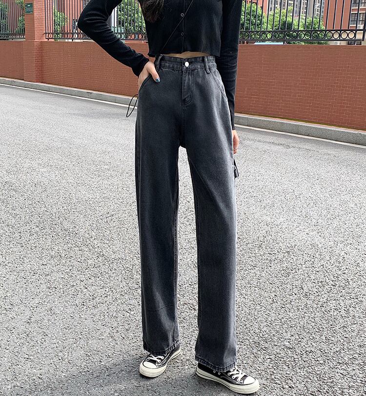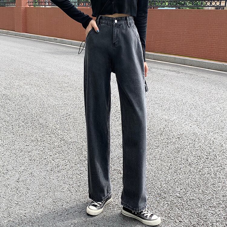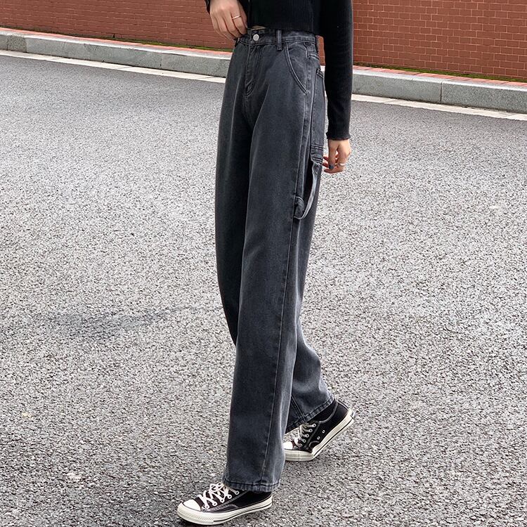 グレーオーバーオール ジーンズ ルーズスタンダードワイドレッグパンツ ハイウェストウェストスリムロング レトロ ワイドパンツ スモーキー クレセントシティ57081887438