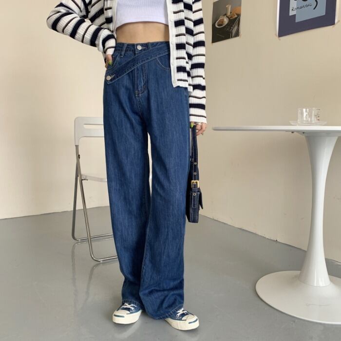 秋人気ジーンズレディースストレートルーズルーズシンワイドレッグパンツハイウエストドレープモップパンツ薄ズボントレンド クレセントシティ37241439939