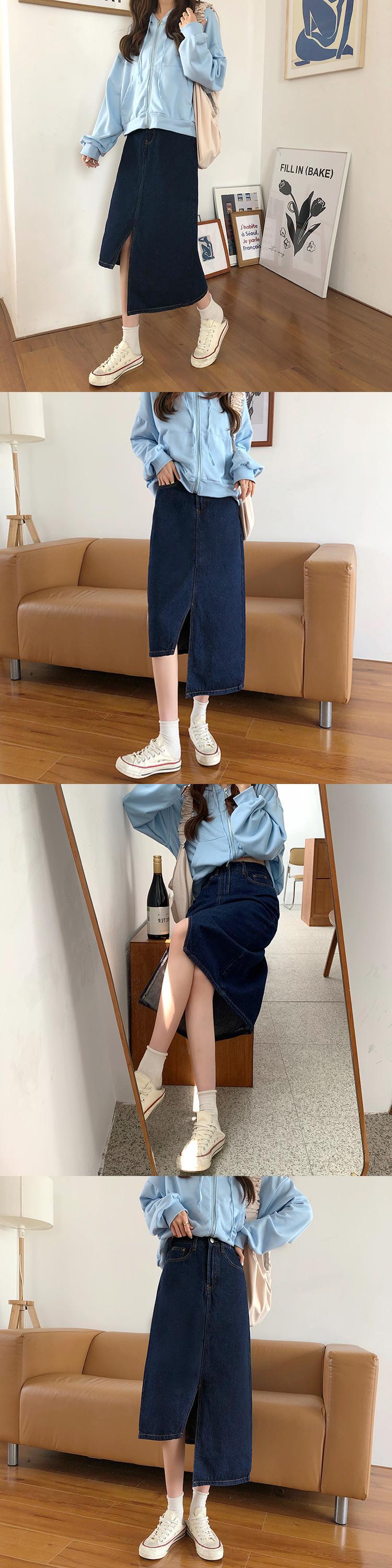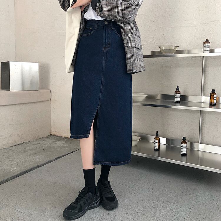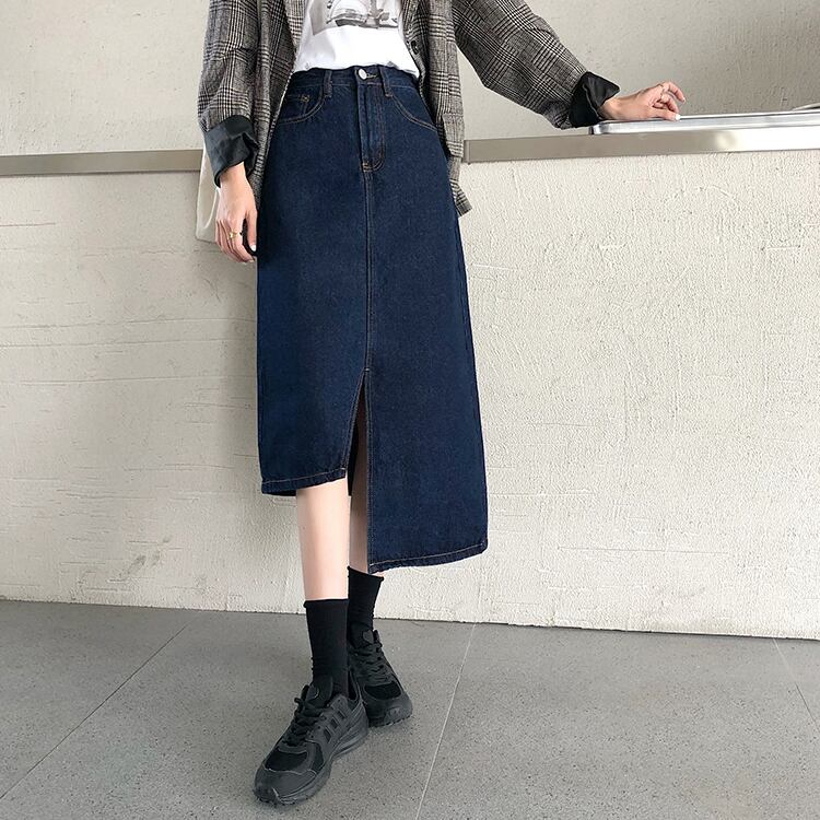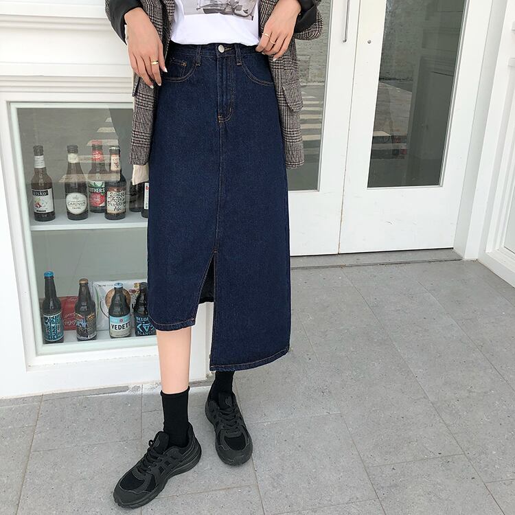 不規則なスリットデニムスカートレディース2020ニュースタイルレトロルーズ気質ミドル丈Aラインスカート クレセントシティ97909571830
