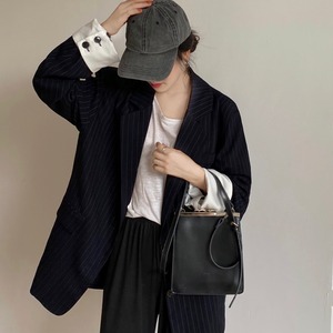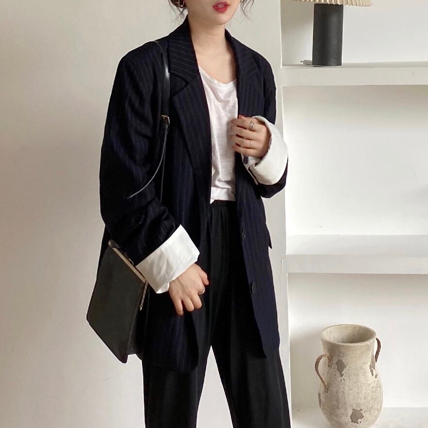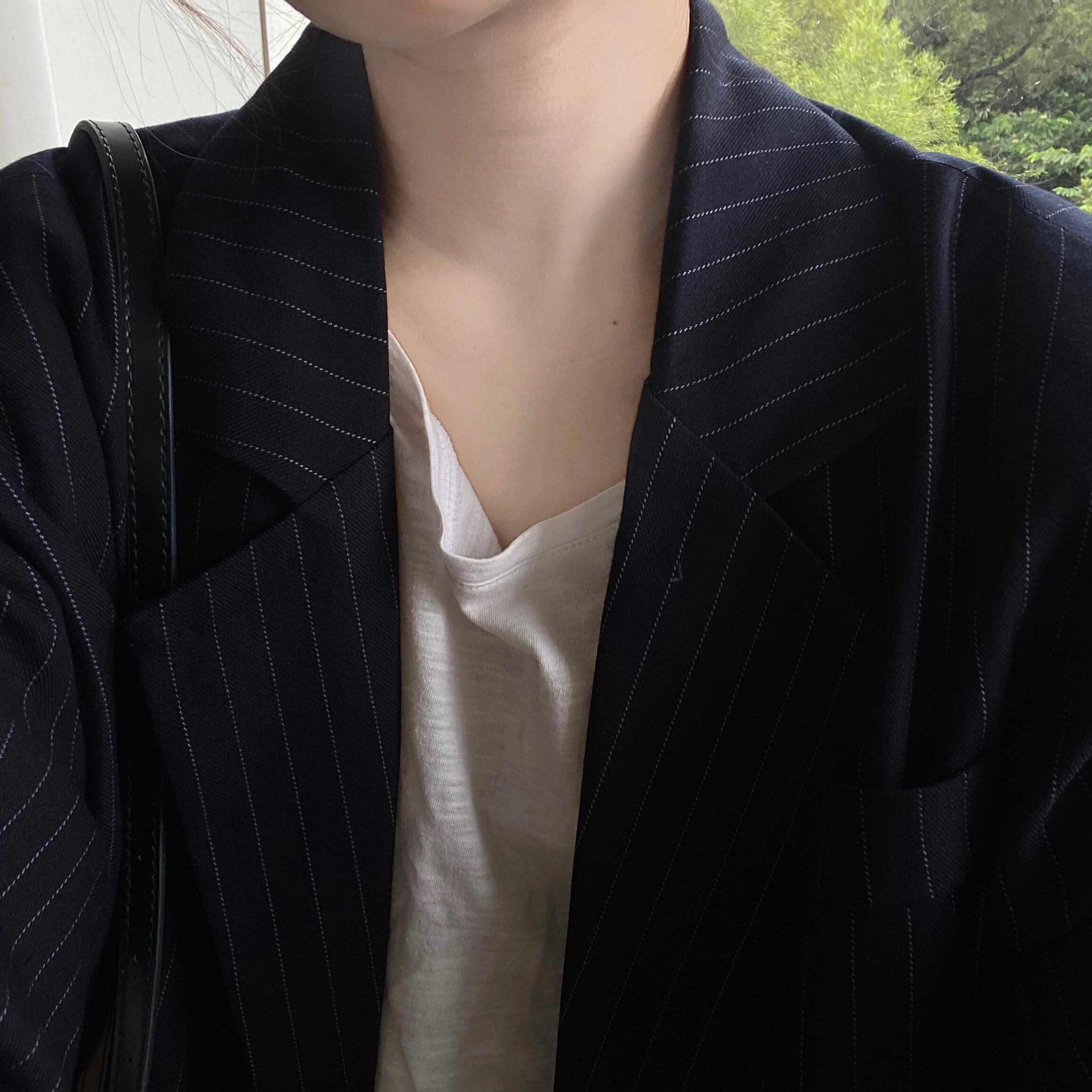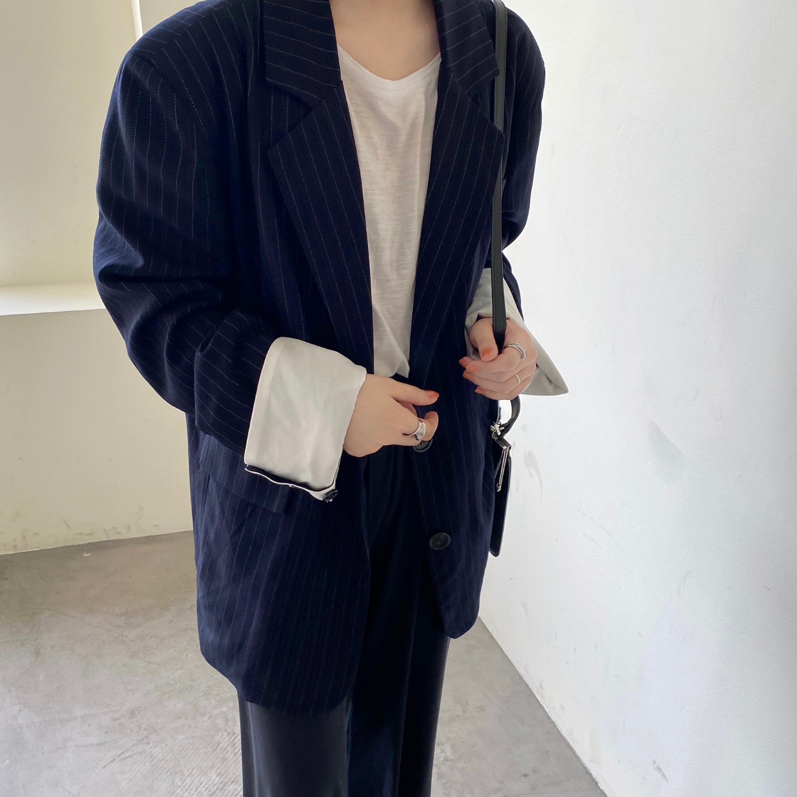 レトロなブルーのストライプのスーツジャケット女性の2020年初秋新しい英国スタイルの小さなルーズシンカジュアルスーツ クレセントシティ26418861764