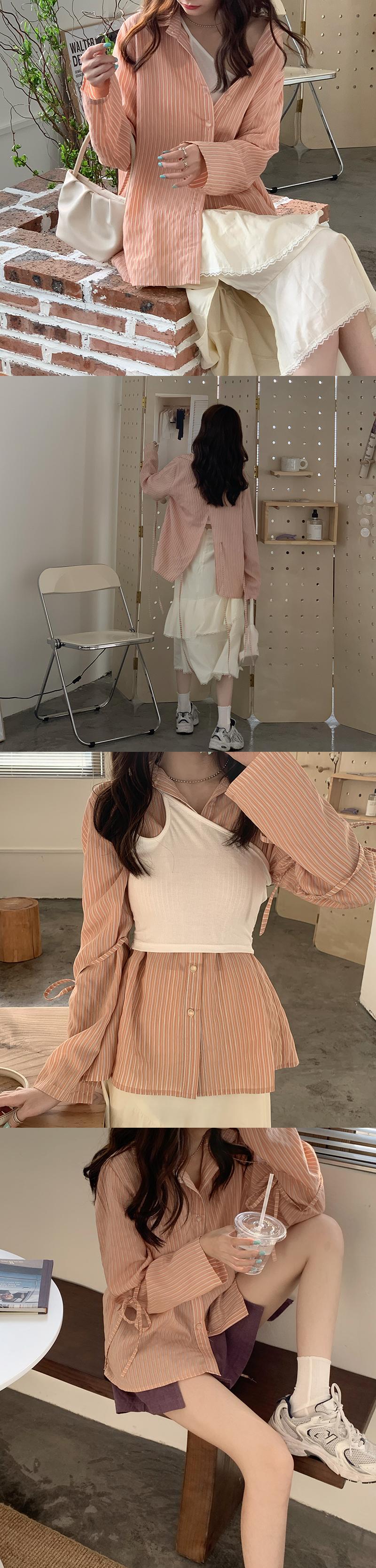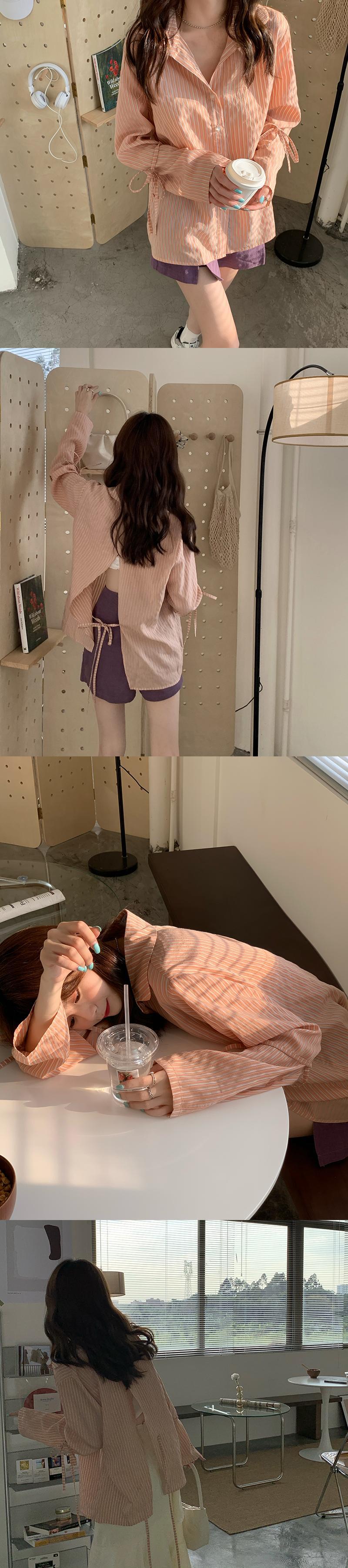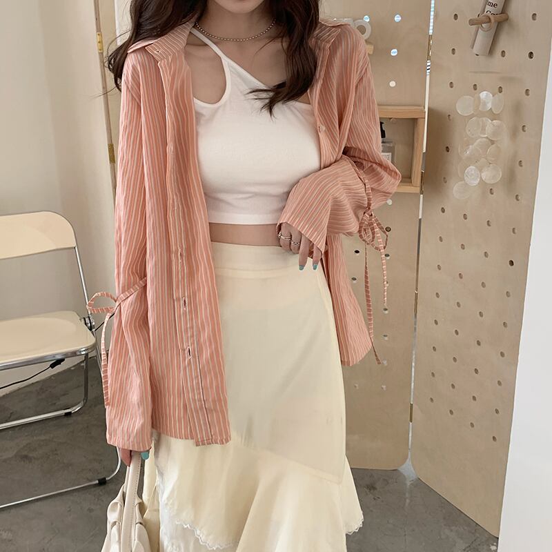ガーリーピンクのストライプシャツ女性のデザインセンスニッチ2020年初秋スプリットネクタイワイドルーズシャツの新バージョン クレセントシティ1011509194