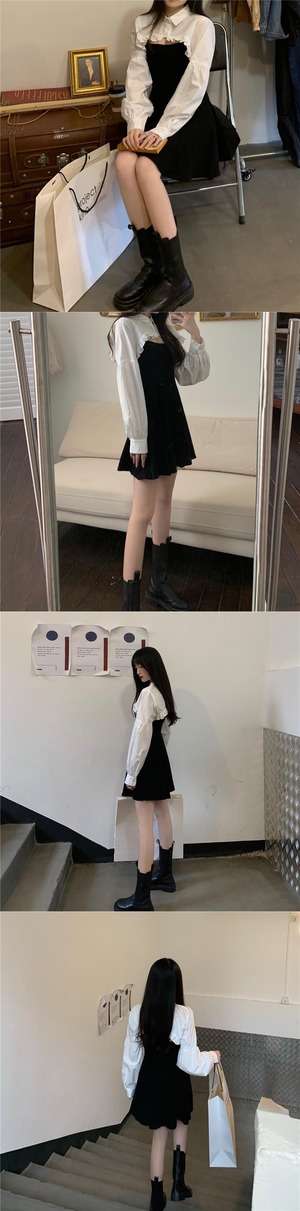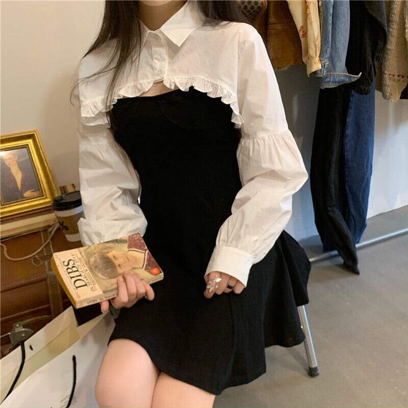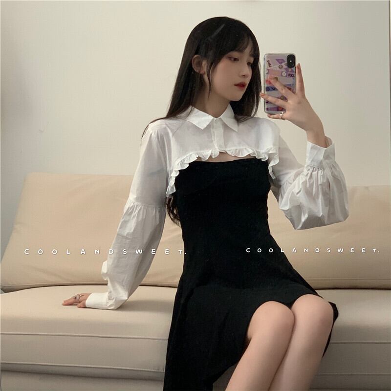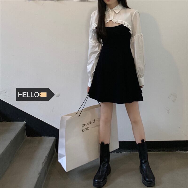 スーツ女性2020年初秋新スタイルスリムサスペンダースカート+木製耳付きランタンスリーブシャツ クレセントシティ32720789103