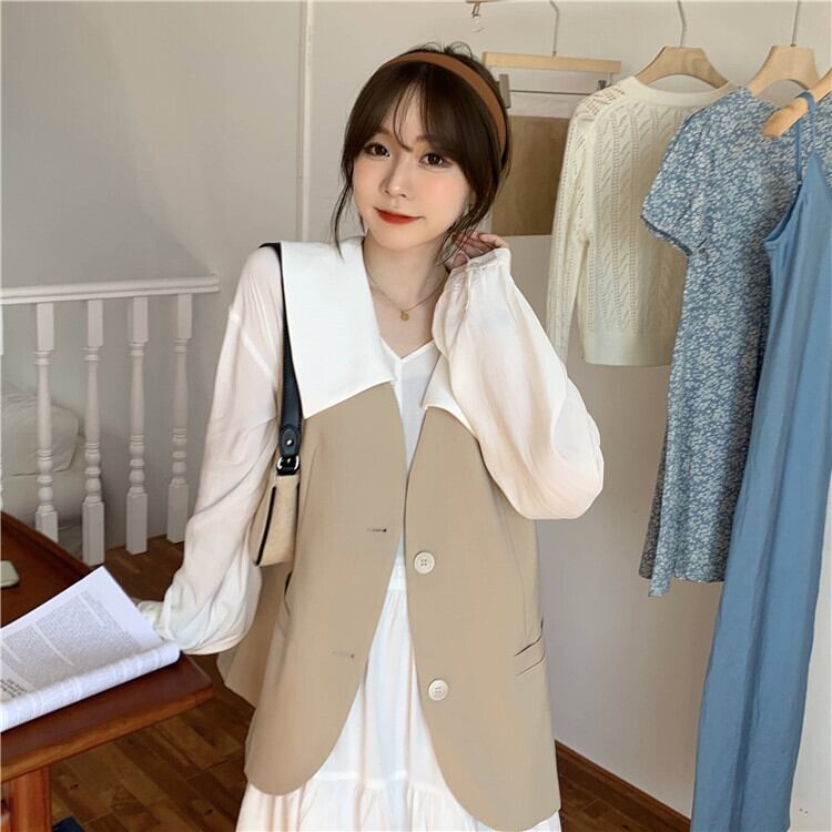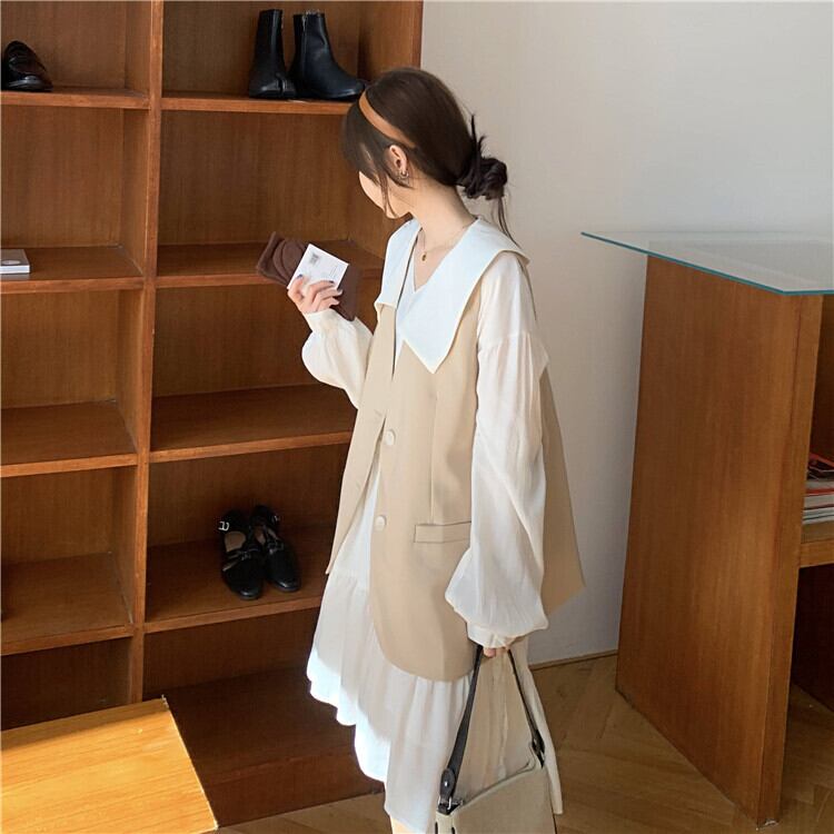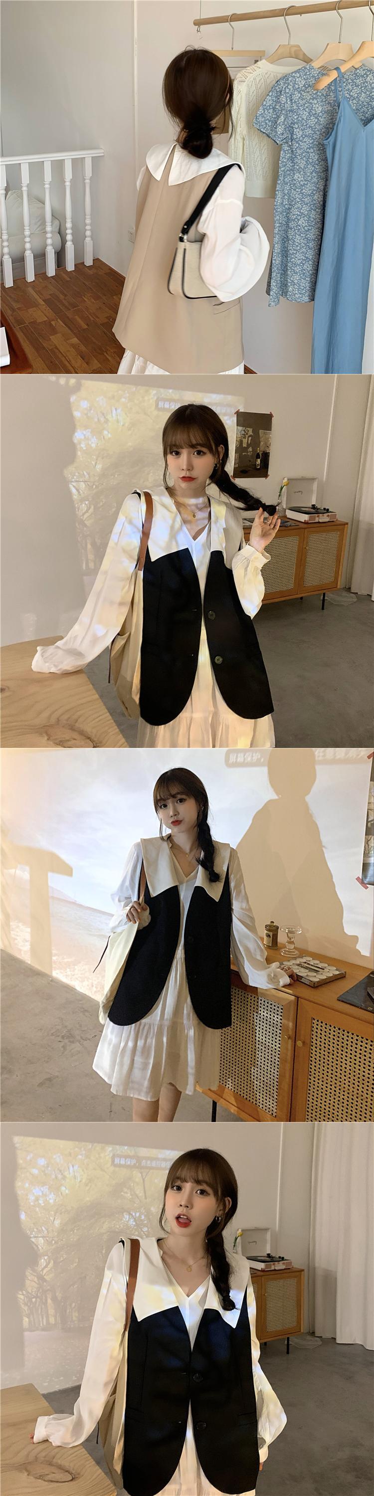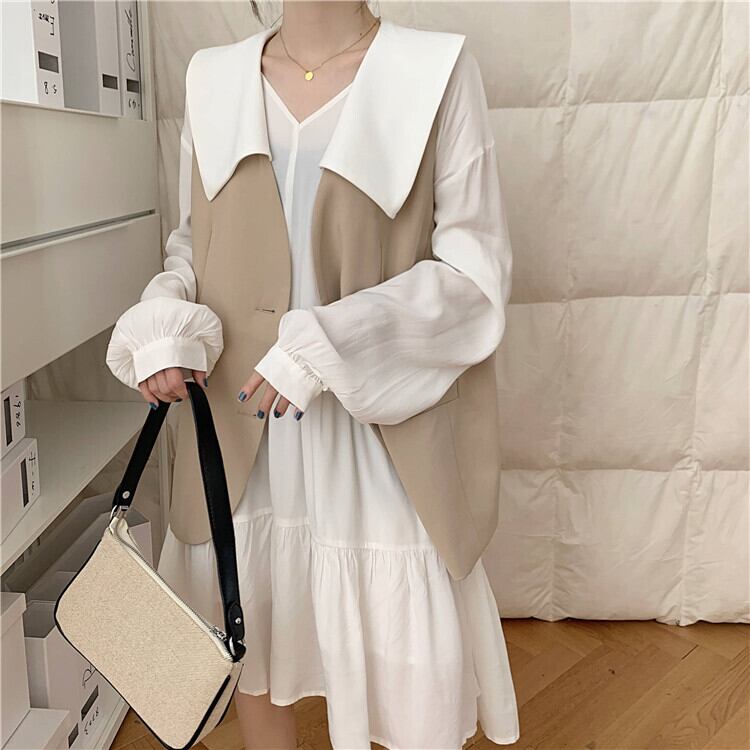 ドールスカート女性2020年初秋ルーズVネックAラインドレス+ファッションコントラストカラーラペルベストインの新バージョン クレセントシティ34232779123