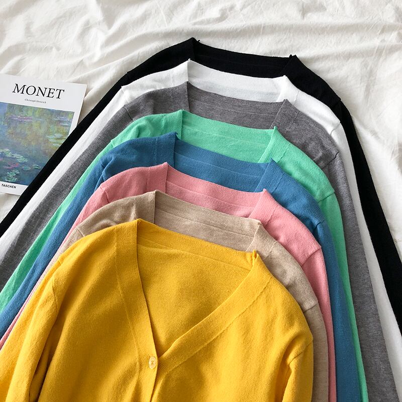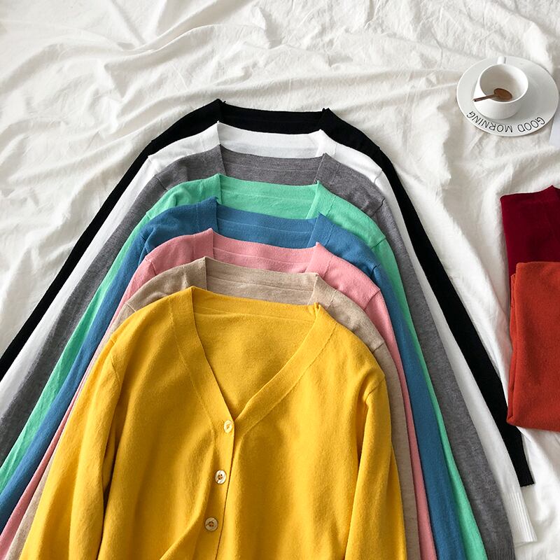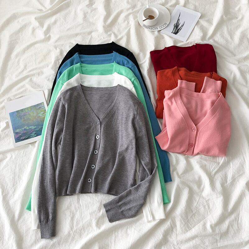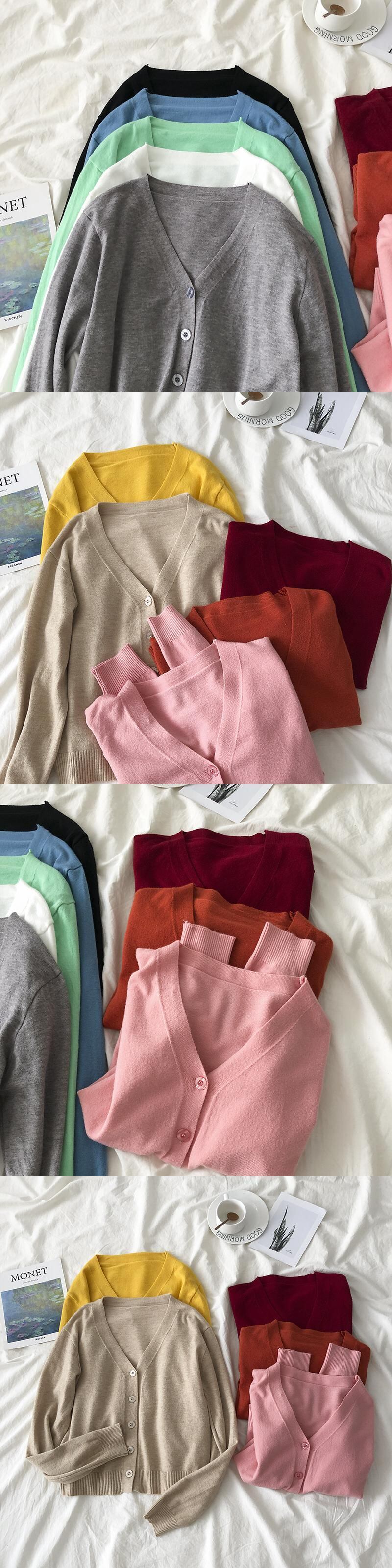 オータムVネック薄手ニットセーター カーディガンジャケット ショートトップス ロング 秋物 クレセントシティ69215390098
