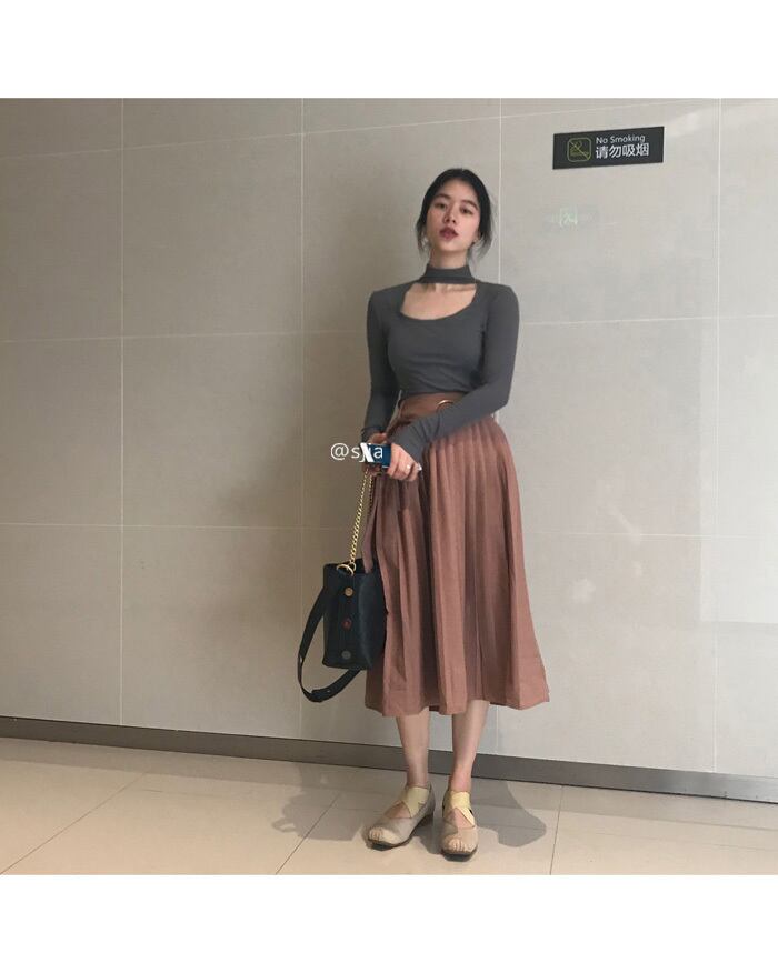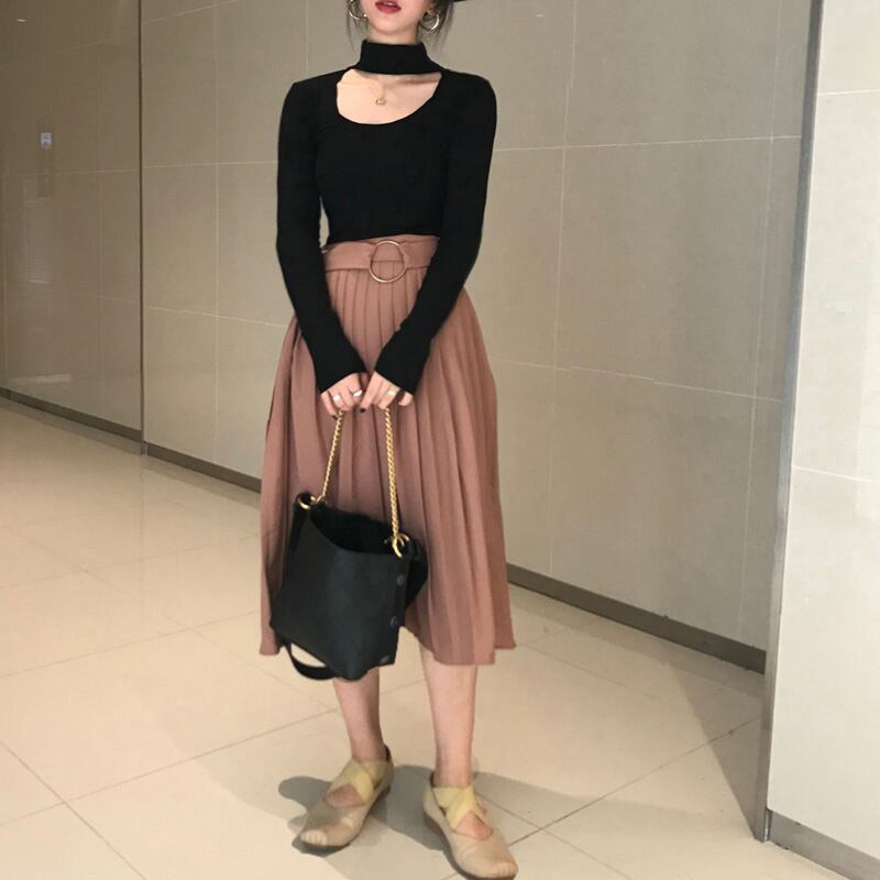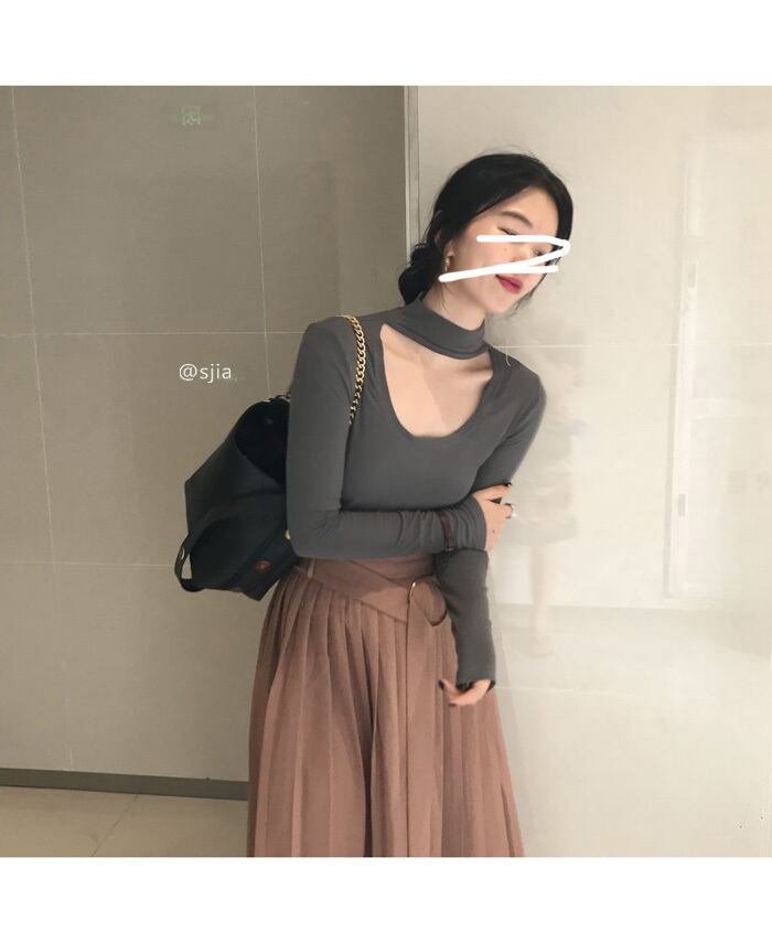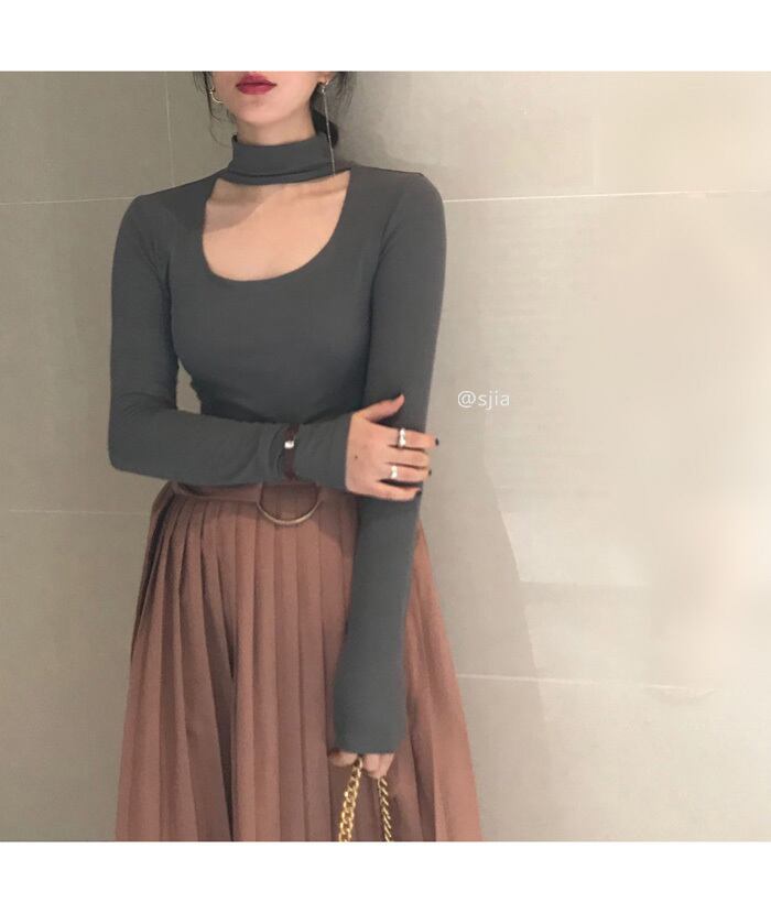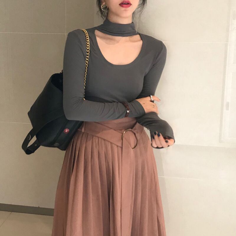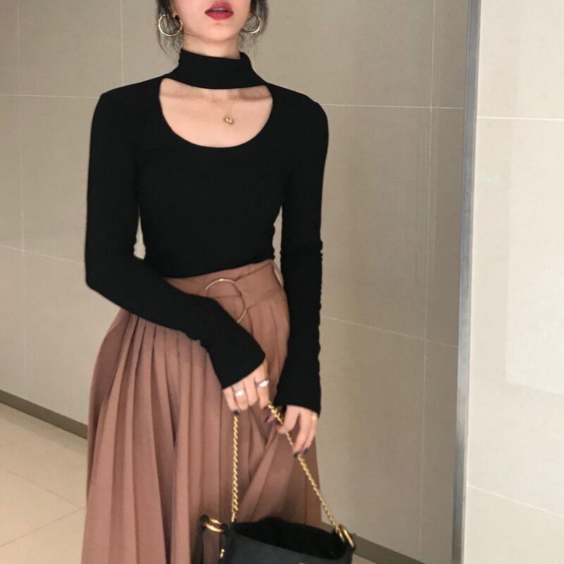 シックな中空U字型デザインの長袖Tシャツ女性の2020年初秋バージョンの新しいスリムなハイネック無地セーター クレセントシティ25948936952