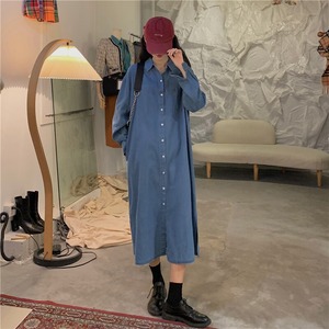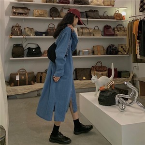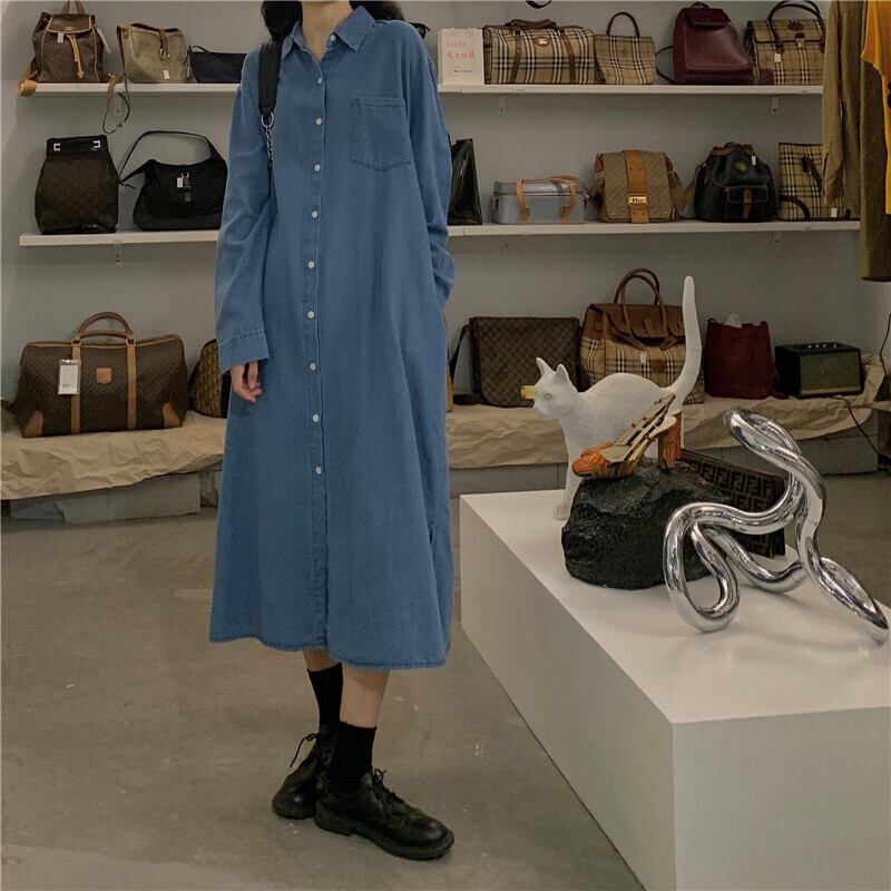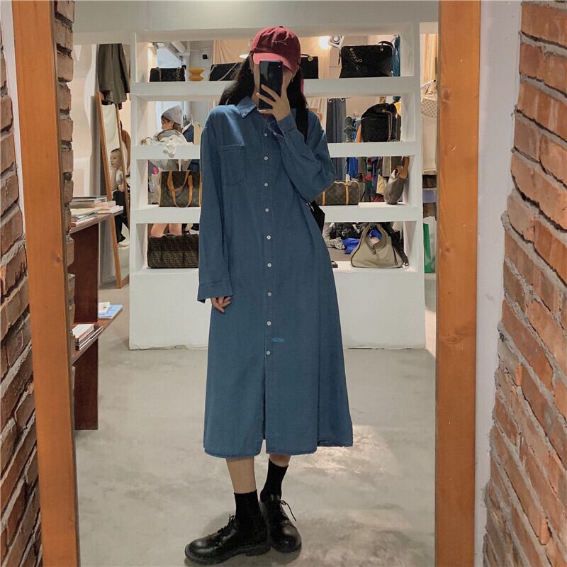 デニムシャツスカート2020年秋新バージョンルーズシングルブレスト膝上ロングスカート気質長袖ワンピースレディース クレセントシティ44805656653