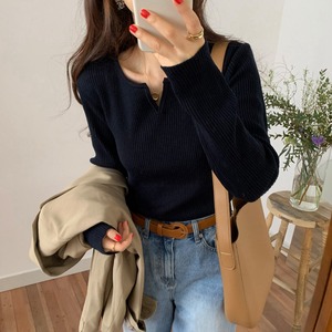 Vネックシャツ オータムルーズ薄手セーター トップス ロング 秋物 クレセントシティ50819723880