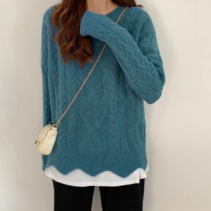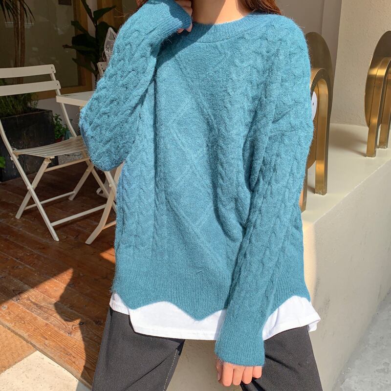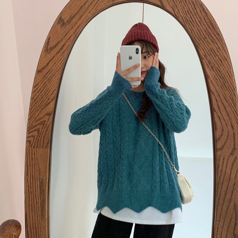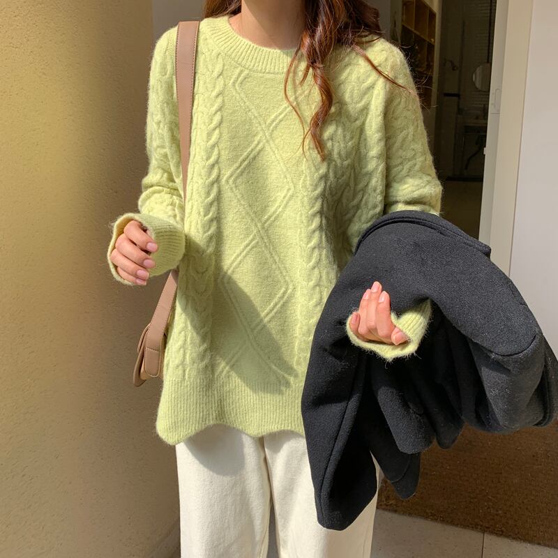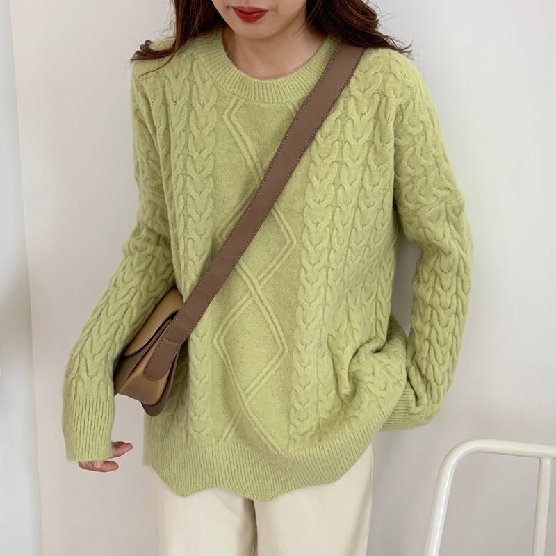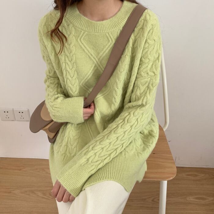 レイジーウィンドツイストセーターレディースアウターウェア2020年秋冬新バージョンルーズワイルドピュアカラープルオーバーニットトップス クレセントシティ83722799812