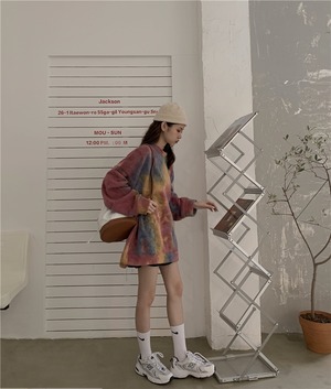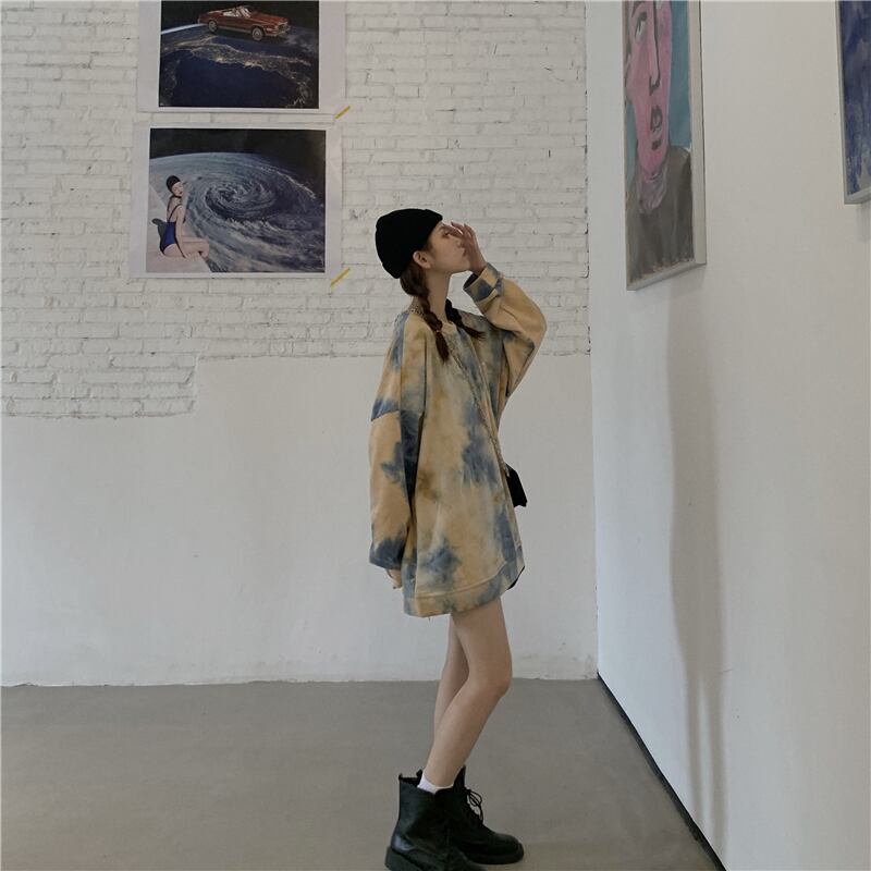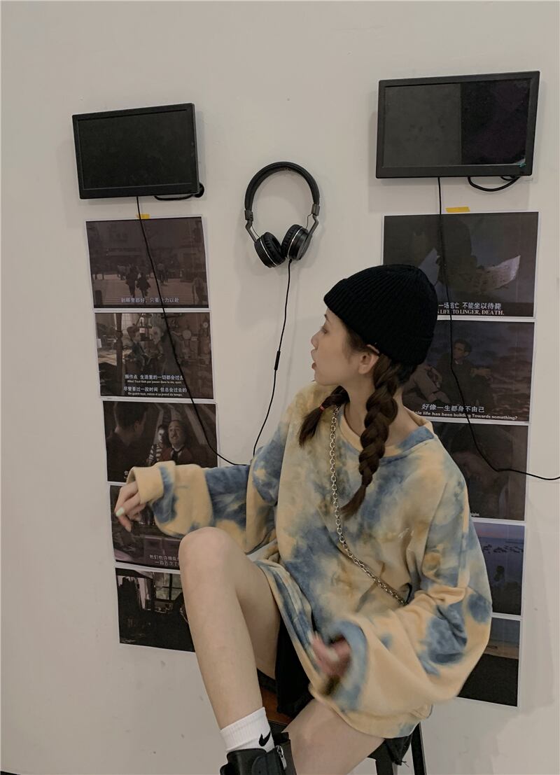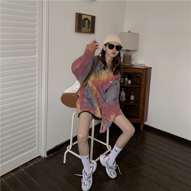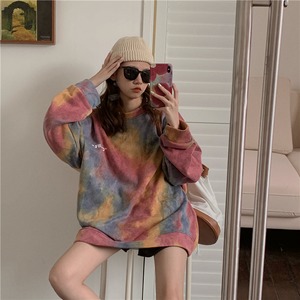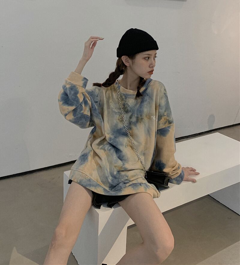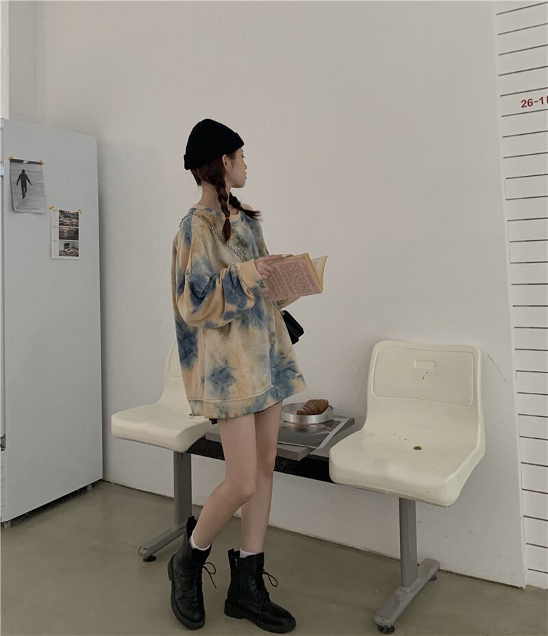 ラウンドネックミドル丈セーターレディース2020年初秋新デザインセンスニッチスタイルルーズ&シン絞り染めトップトレンド クレセントシティ87377493094