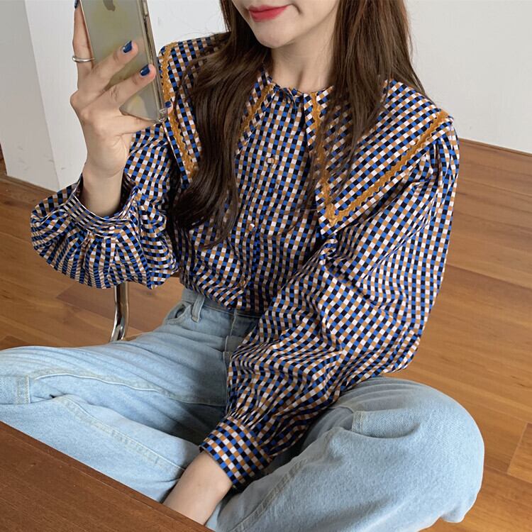 レトロシャツ女性デザインセンスニッチ2020年秋新バージョンルーズエイジオールマッチ長袖シャツトップ クレセントシティ89954940997