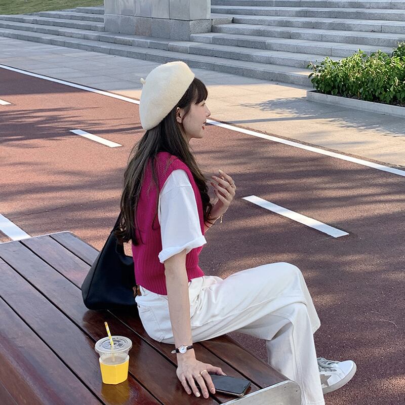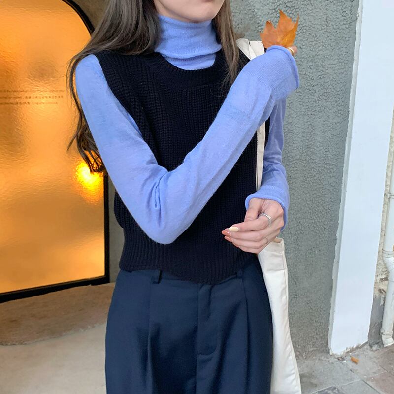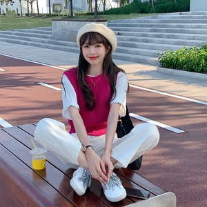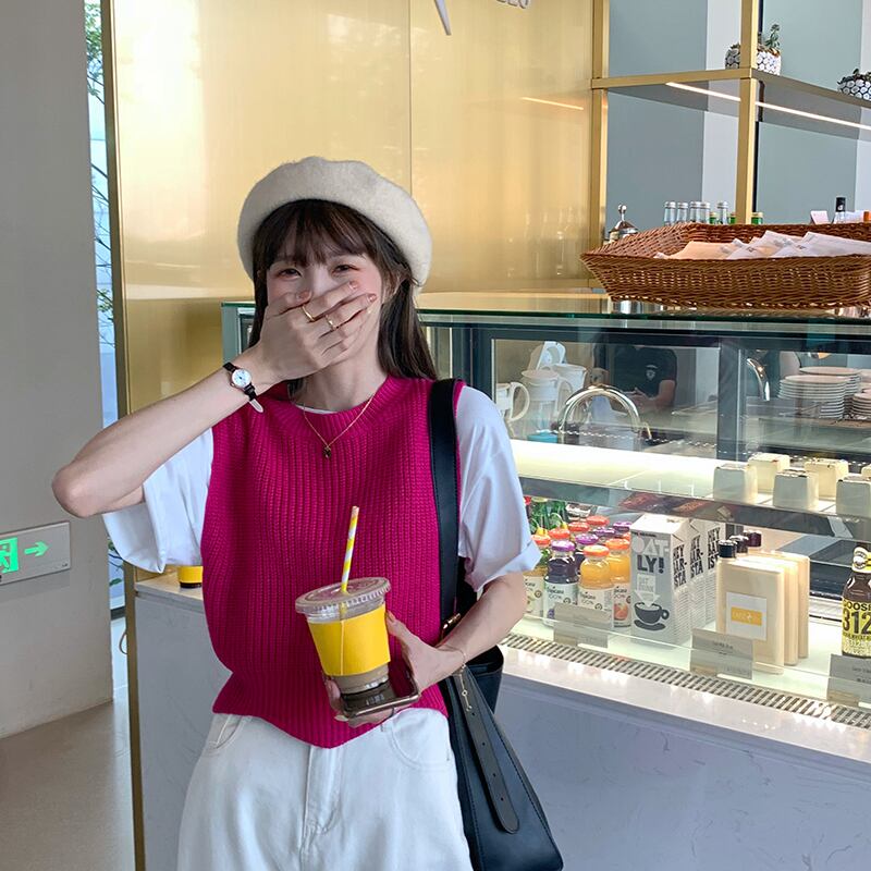 ピュアカラーピットストライプベスト女性の2020年初秋新しいbmウィンドスタイルスリムスリムラウンドネックニットベスト クレセントシティ89942934343