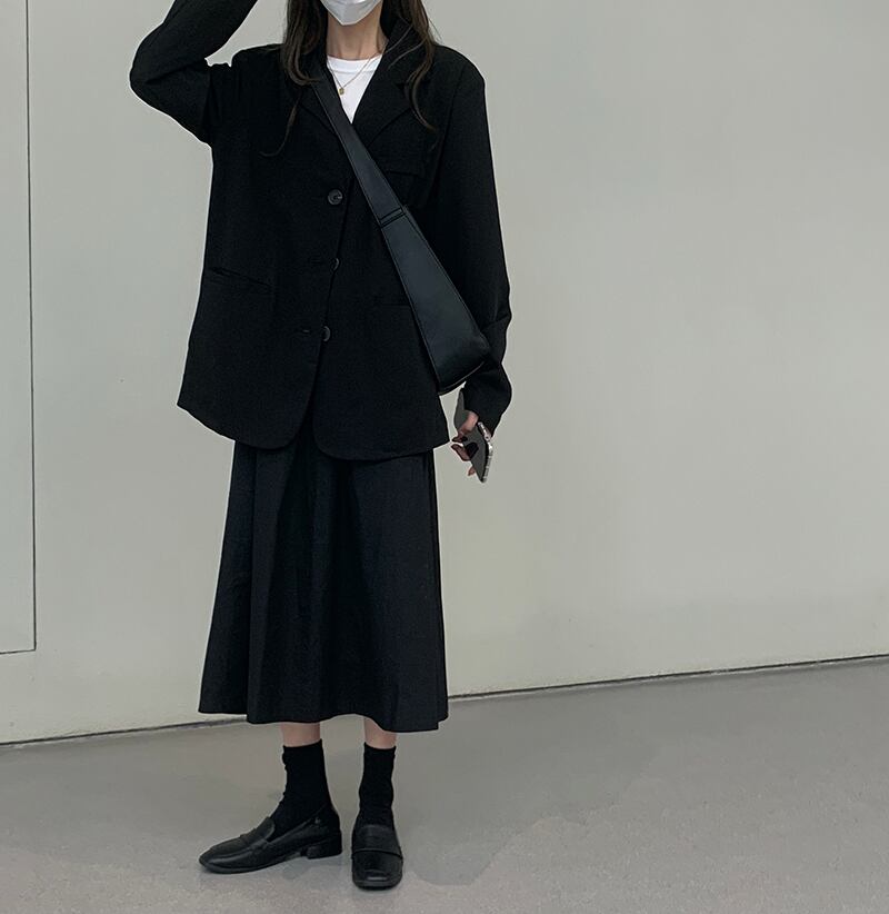 黒のスーツジャケット女性の2020年初秋新しい英国スタイルの小さなルーズな薄いスーツ+ Aラインスカート クレセントシティ60964816185