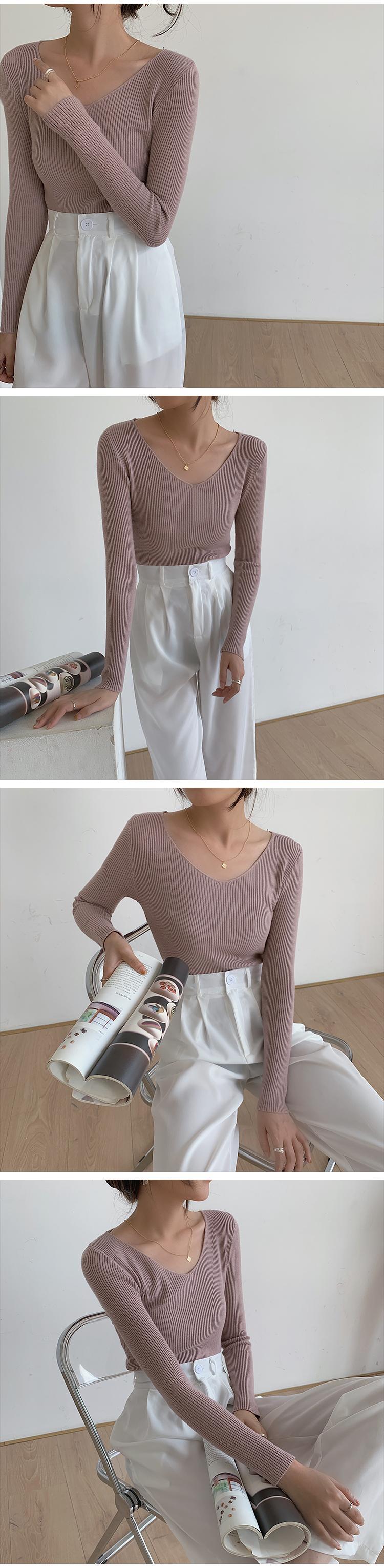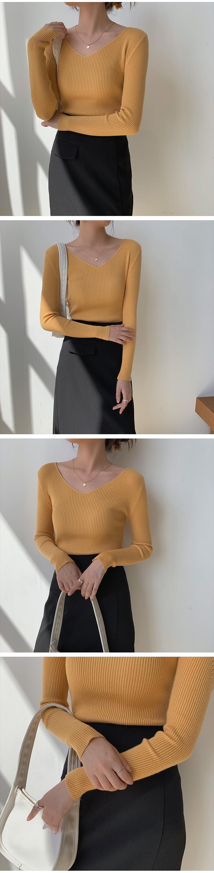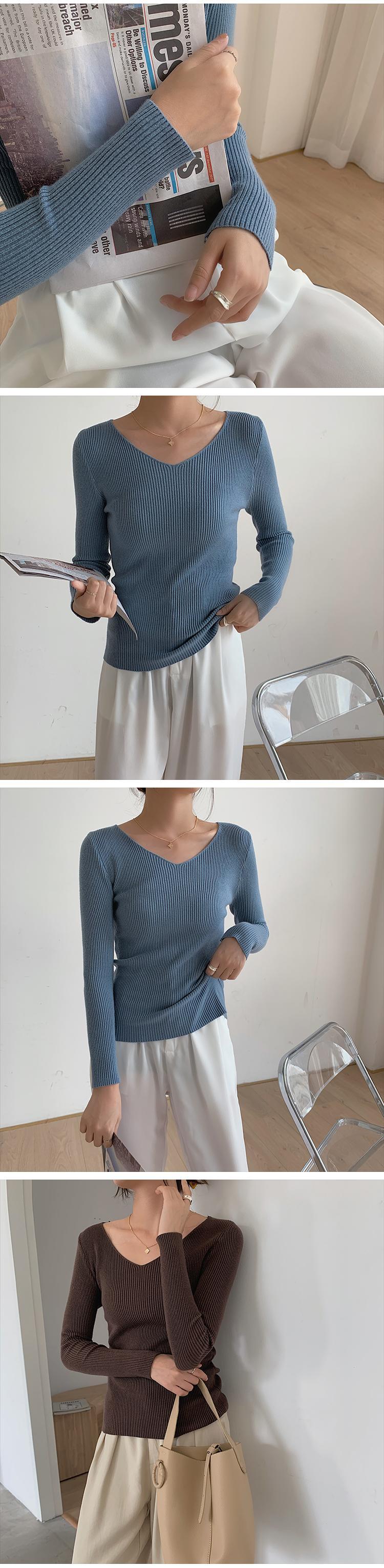 Vネックセーターシンレディース2020ニュースタイルピットストライプ秋冬シングルウェアスリムスリミングインナーベースシャツ クレセントシティ22965712617