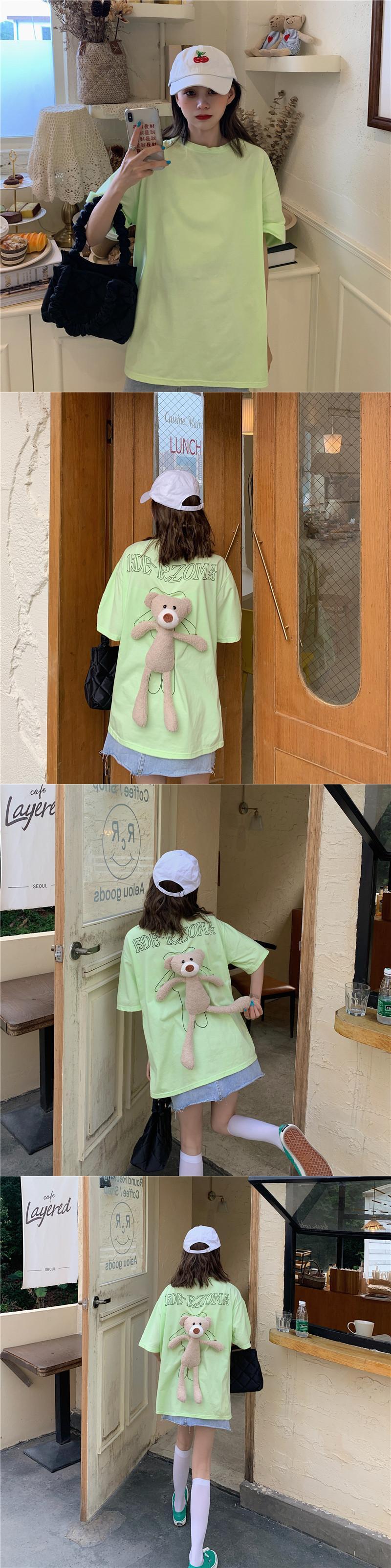 立体的なバックベアデザインセンス長袖Tシャツ女性2020年夏新バージョンルーズミドル丈トップイン クレセントシティ73793681203