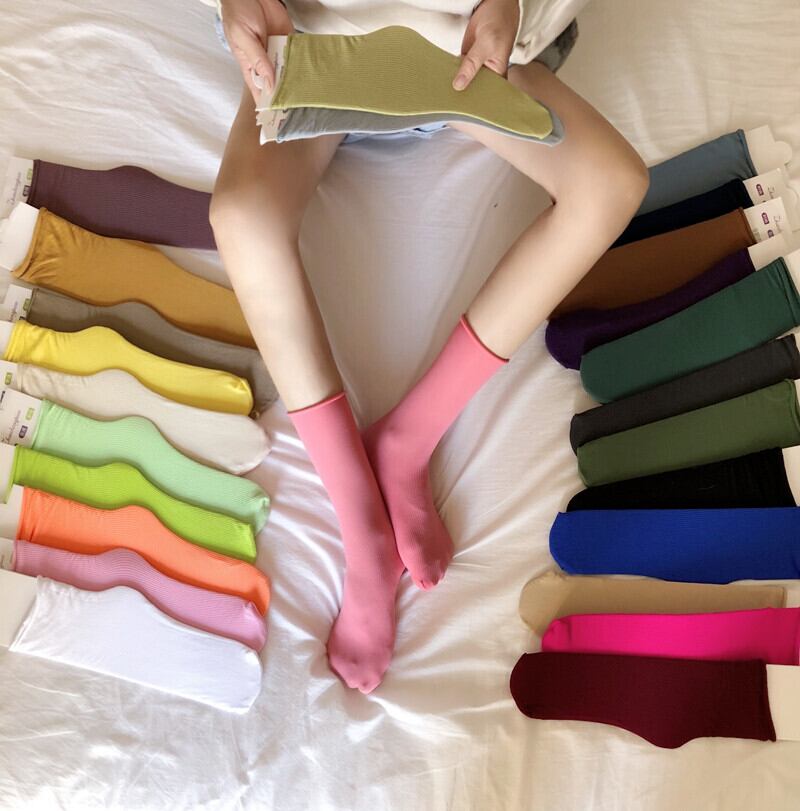 2020年秋冬新バージョンキャンディーカラーパイルソックスレディースカジュアル薄手通気チューブソックス無地ストッキングトレンド クレセントシティ4601798220