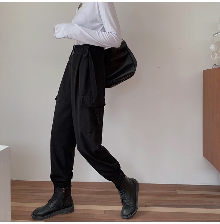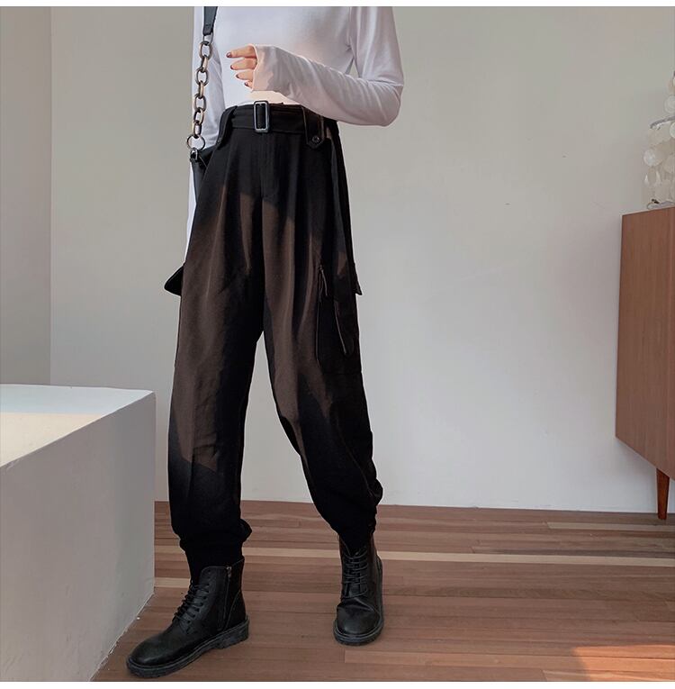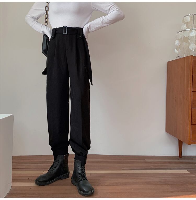 ファッションオーバーオールレディース2020新秋冬ハイウエストルーズスリムストレートドレープスラックスカジュアルパンツ クレセントシティ81438843178