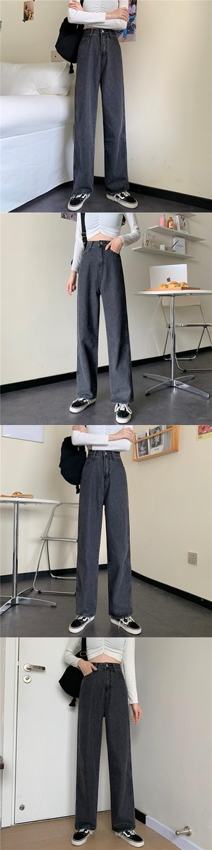 ブラックグレージーンズ オータムスタイルルーズパンツ ハイウェスト 秋物 クレセントシティ57535380415