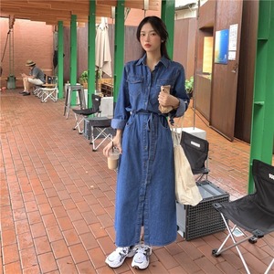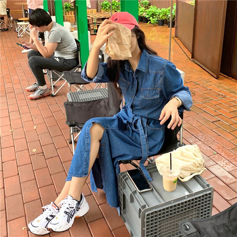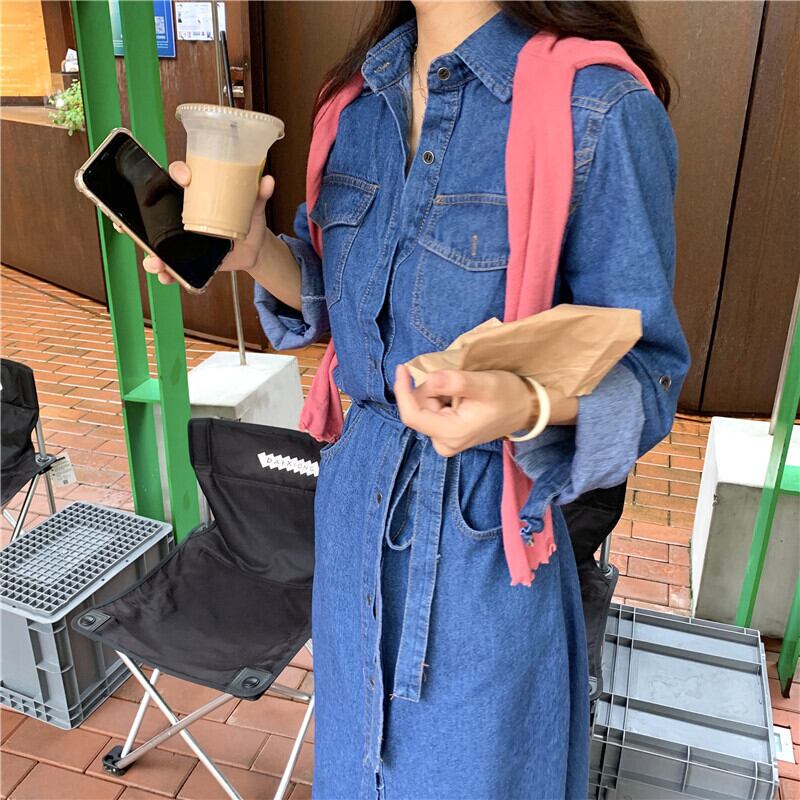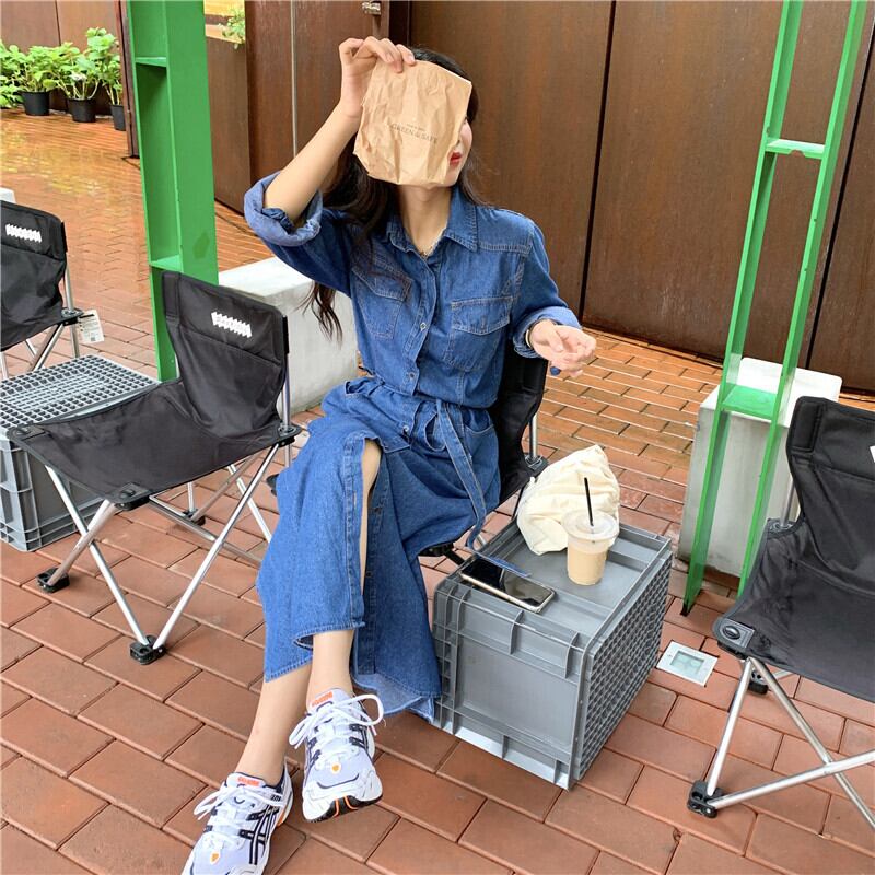 レトロロングデニムシャツドレス2020年秋ベルトカーディガン長袖ドレス女性 クレセントシティ54730767563