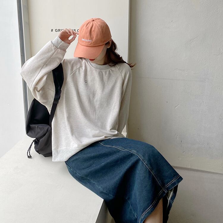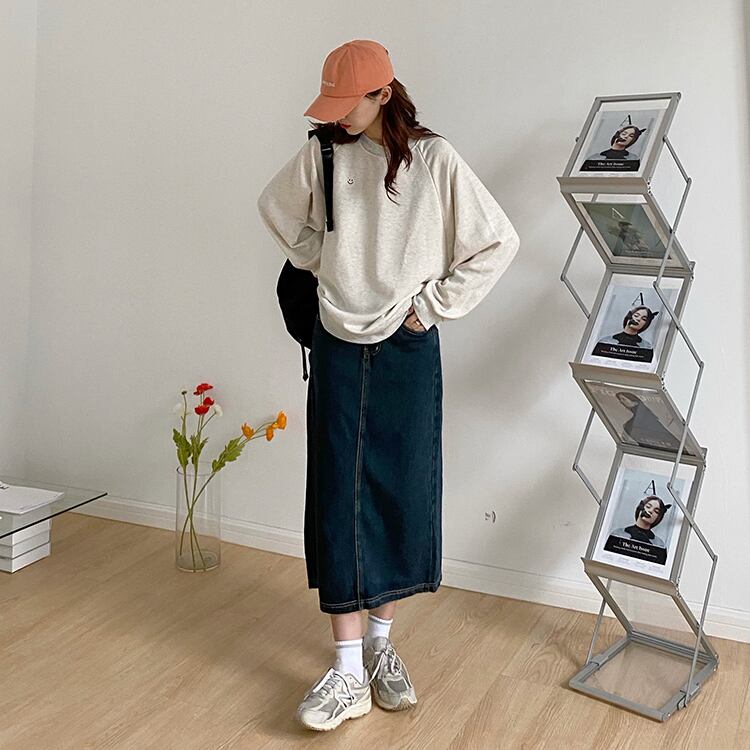 怠惰なスタイルのルーズで用途の広い薄いセーターの女性+ハイウエストスプリットミドル丈デニムスカートツーピース婦人服 クレセントシティ1030484178