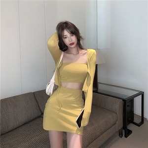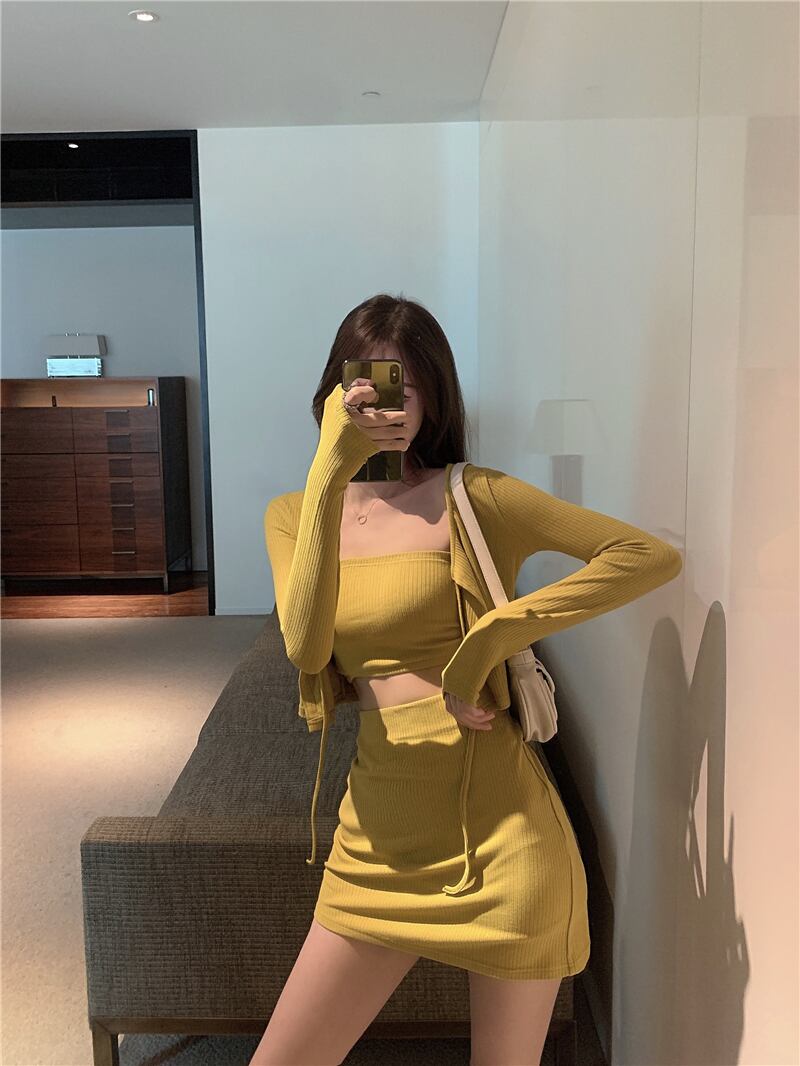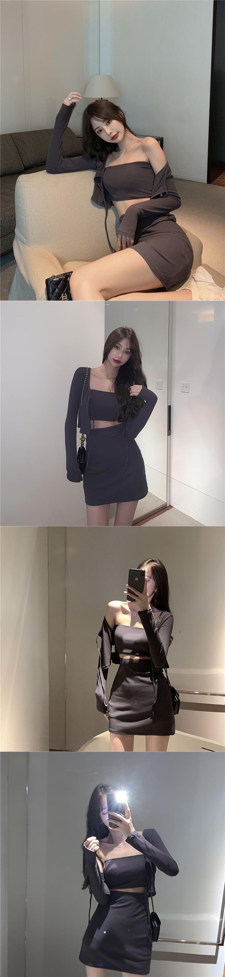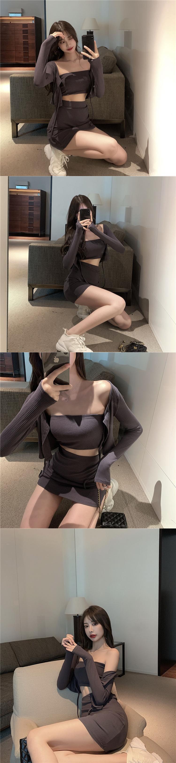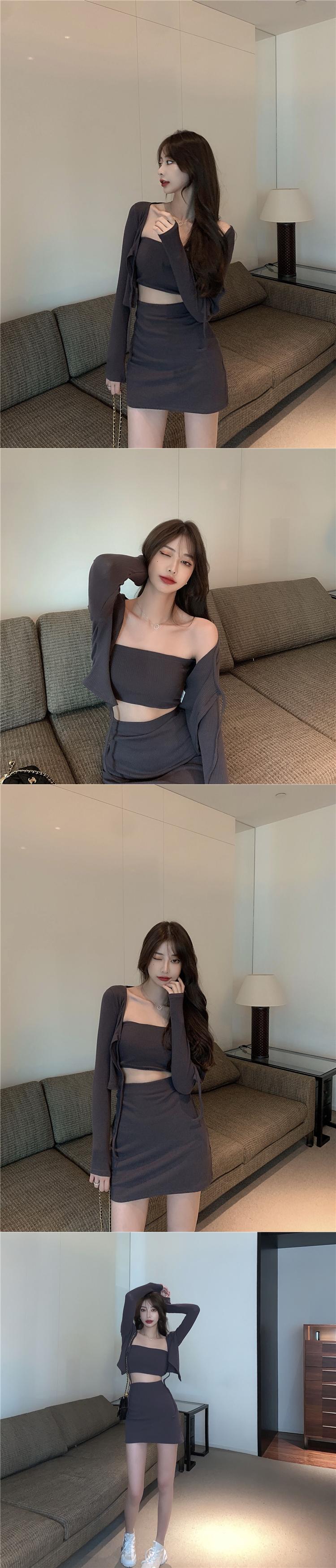 スーツウィメンズ2020新秋スリーピースチューブトップ+スリムレースカーディガン+ハイウエストバッグヒップスカート クレセントシティ48215020531