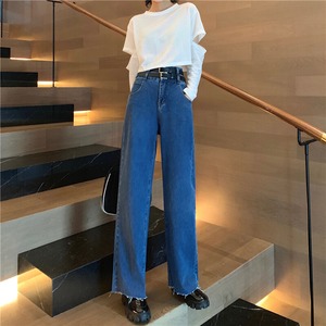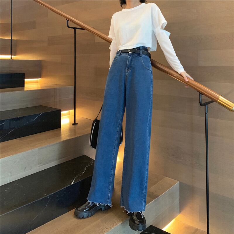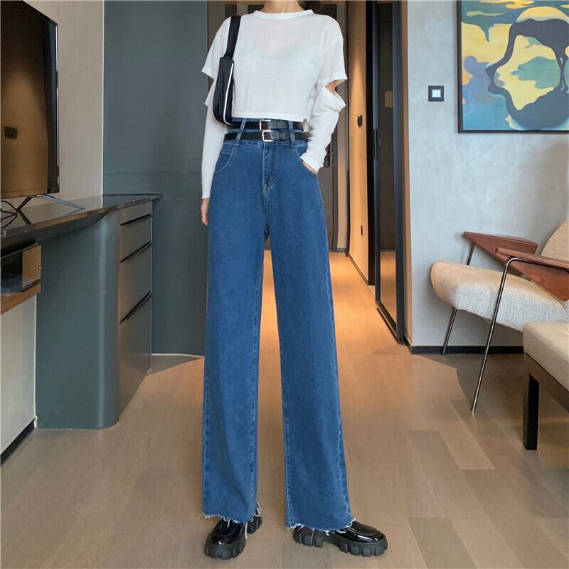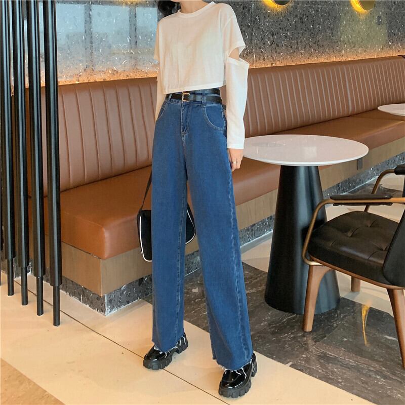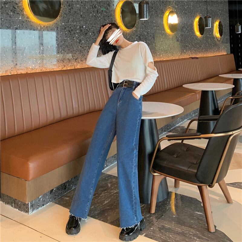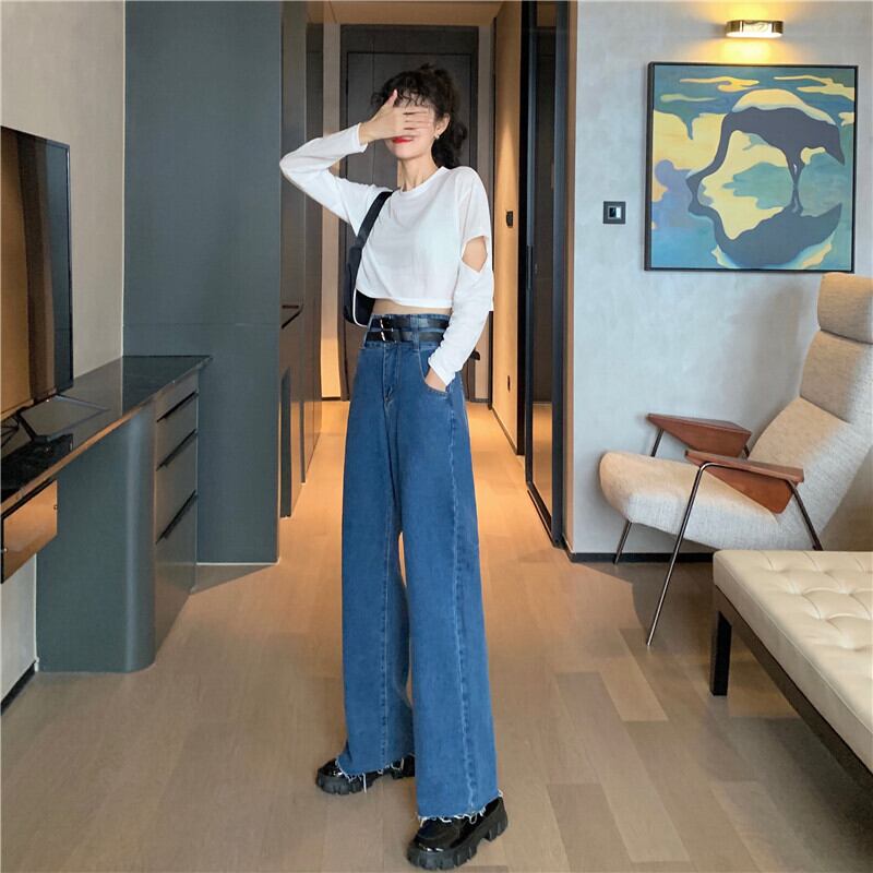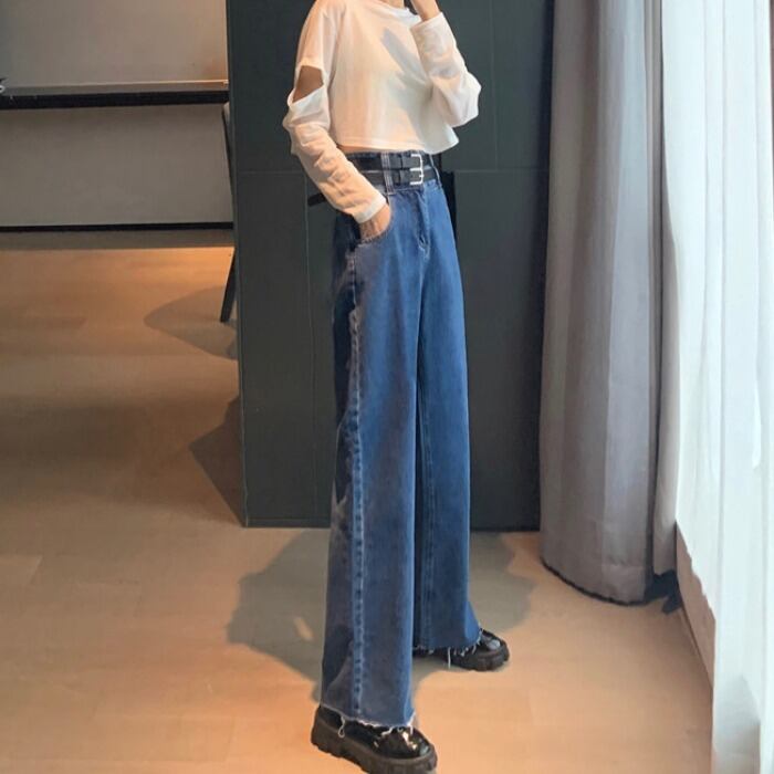 初秋のハイウエストジーンズレディース2020新バージョンルーズ&シンスプリットダブルベルトデザインワイドレッグパンツトレンド クレセントシティ86624605391
