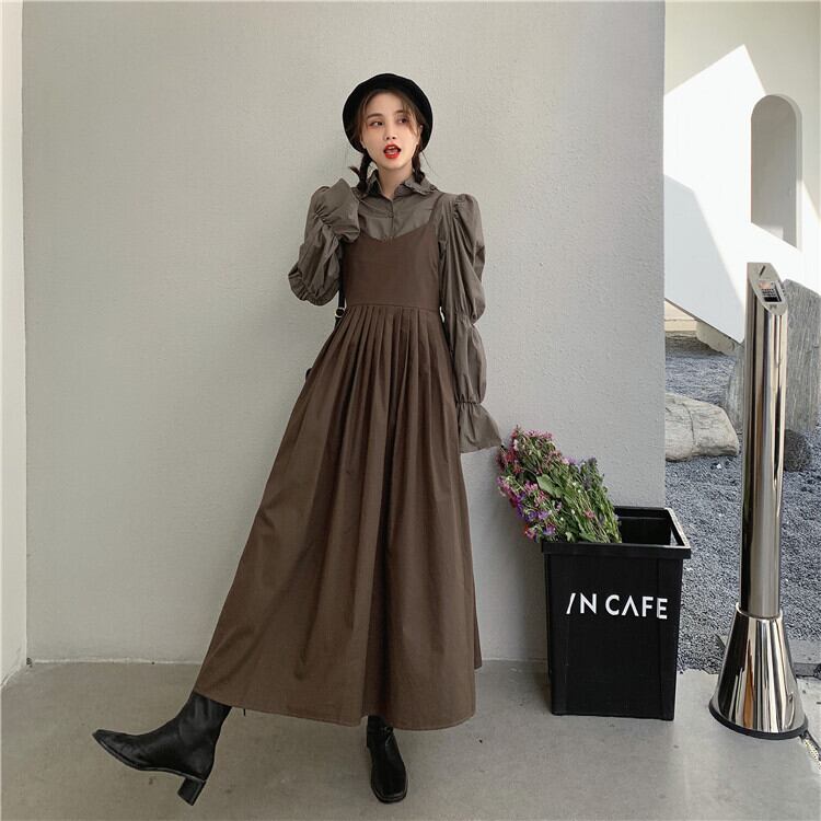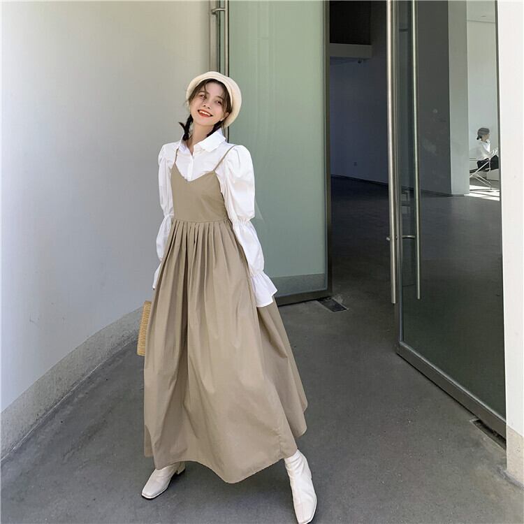 スーツ女性2020年秋新バージョンルーズバブル長袖シャツ+サスペンダードレスツーピーススーツ クレセントシティ8400729261