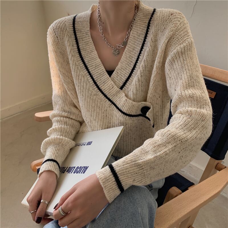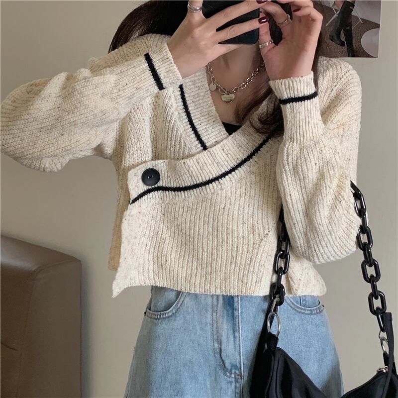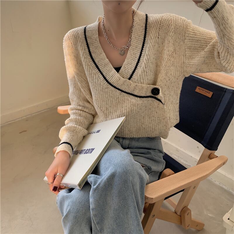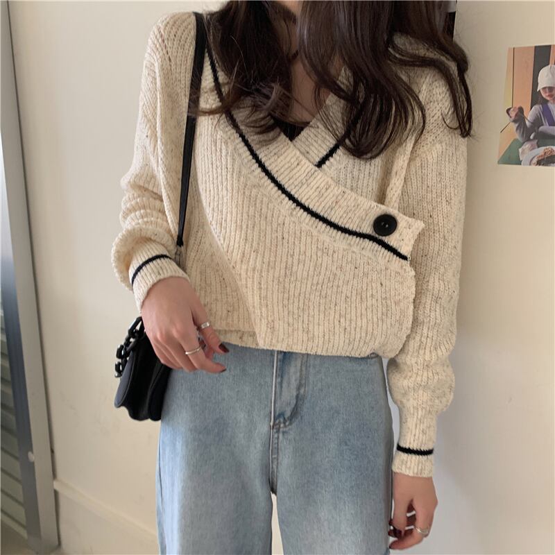 セーターウィメンズ2020ニュースタイルプルオーバーデザイントップルーズで薄い秋冬のワンボタン薄ニットセーター クレセントシティ579027821