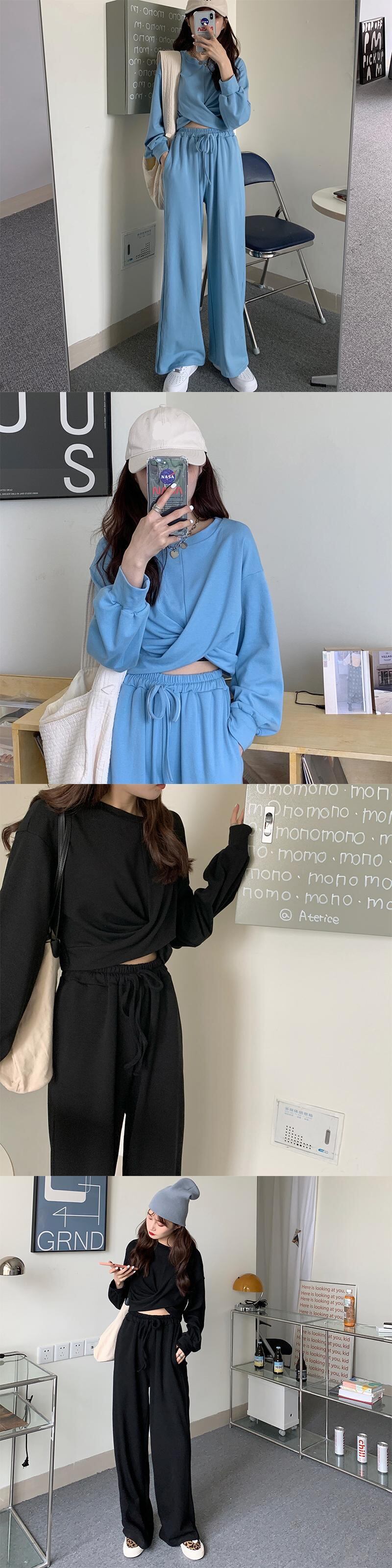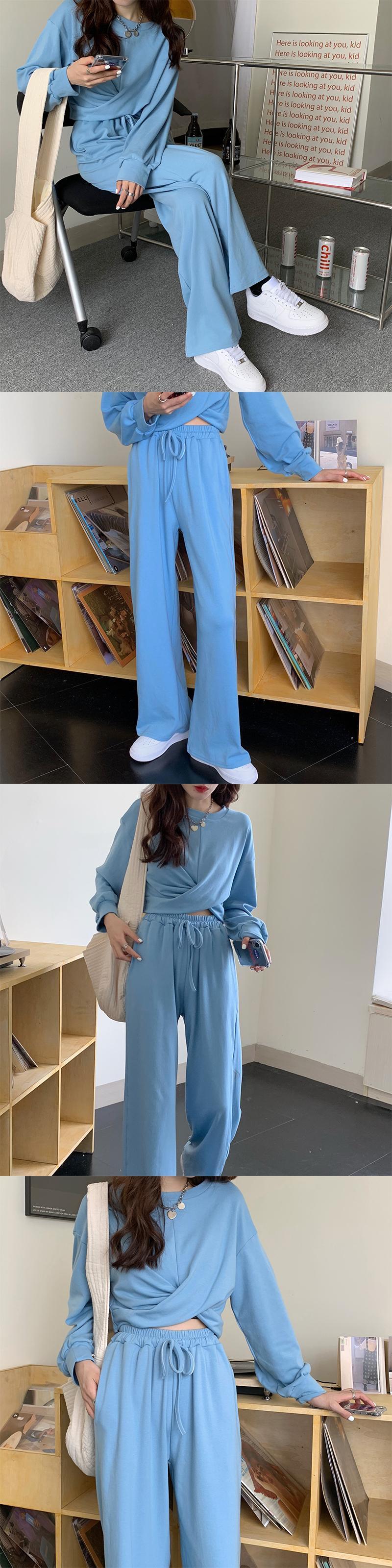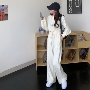 カジュアルスポーツスーツの女性の2020年秋バージョンの新しいルーズクロスデザインセンストップ+ワイドレッグパンツツーピーススーツ クレセントシティ51180836143