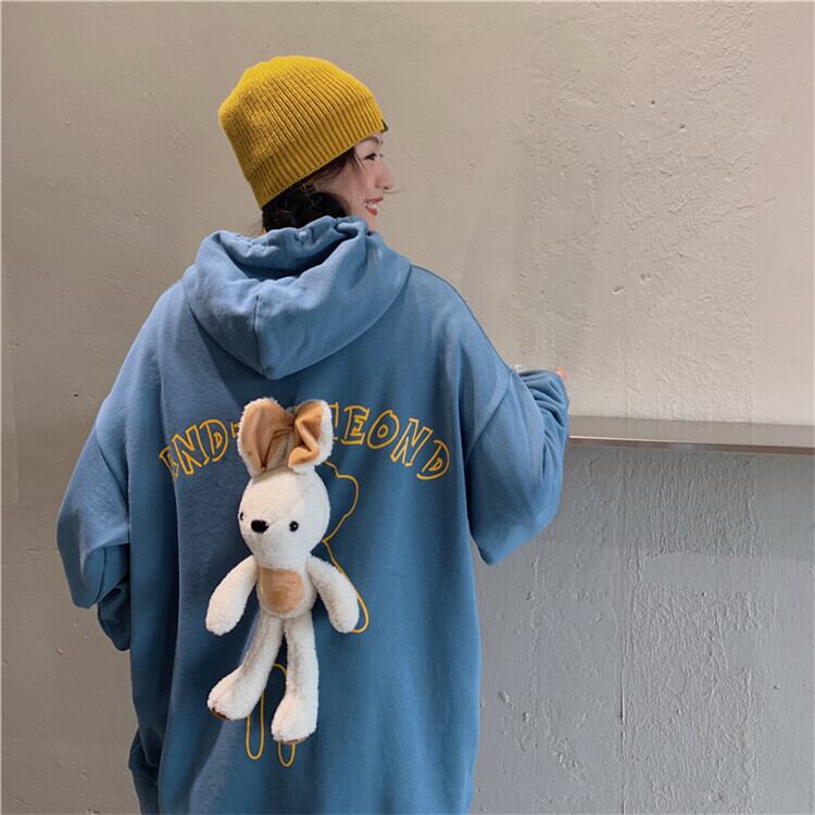 フード付きガードのバージョン2020年秋新しいルーズレイジーウィンドミドル丈クマデザインセンスの薄いカジュアルトップ クレセントシティ71056453185