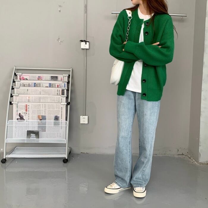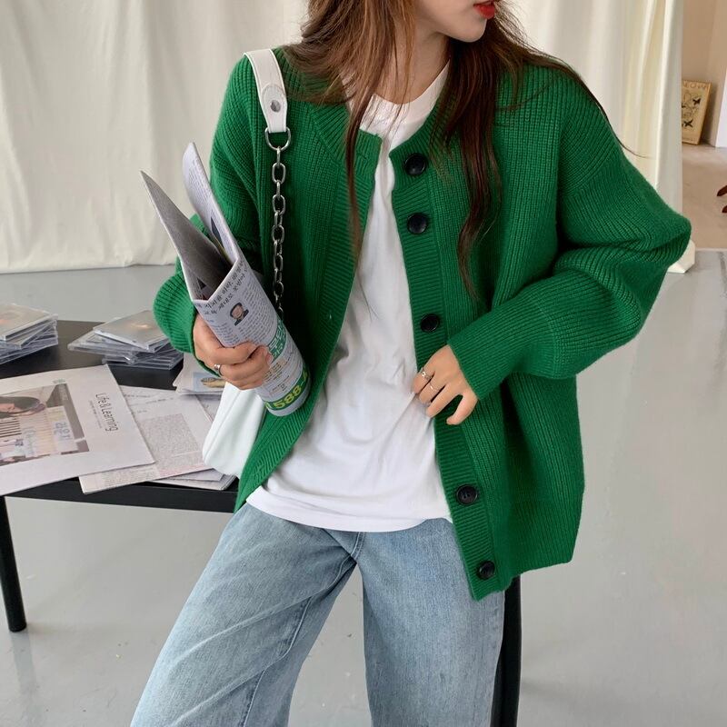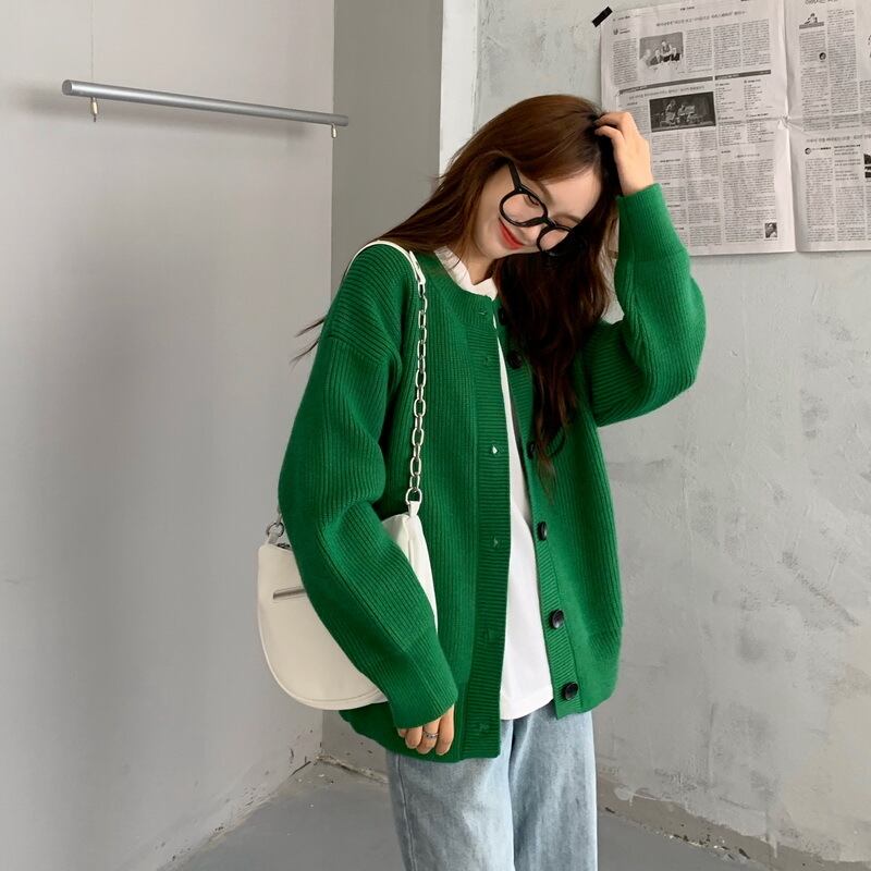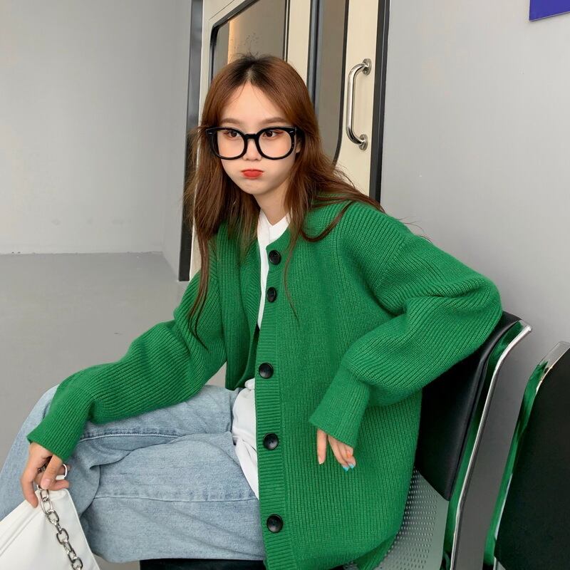 セーターカーディガンジャケット女性の2020年初秋新しいルーズで怠惰なスタイルの無地のミドル丈カジュアルセーター クレセントシティ92664876374