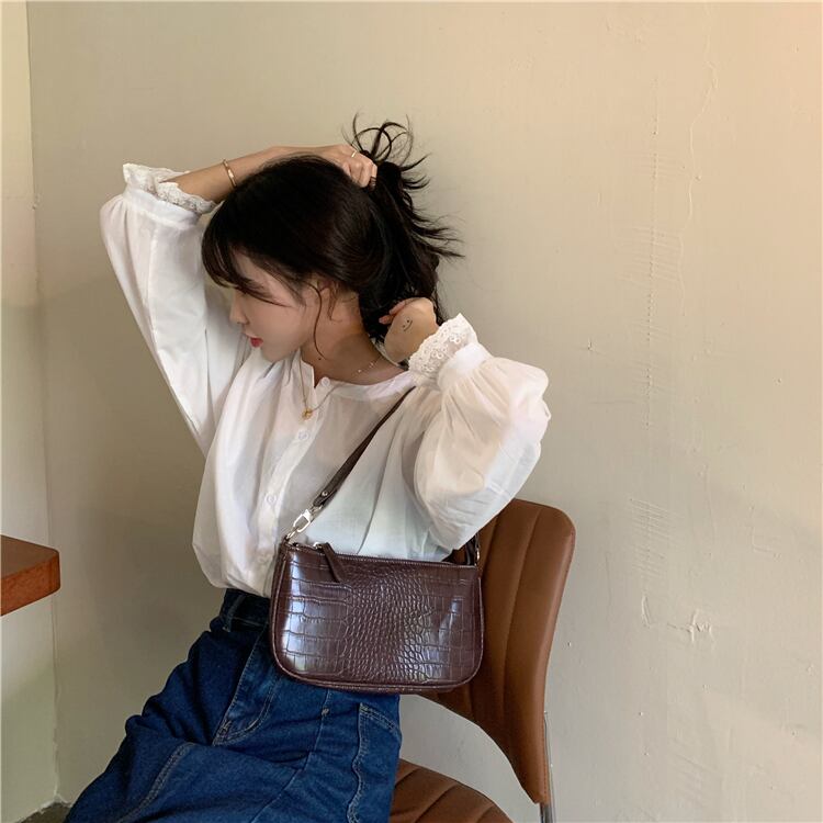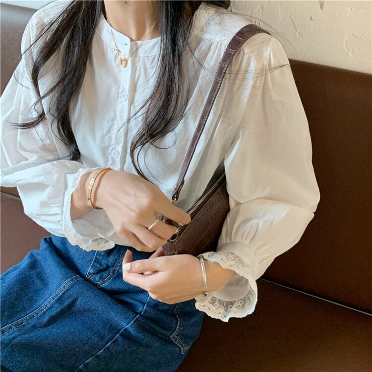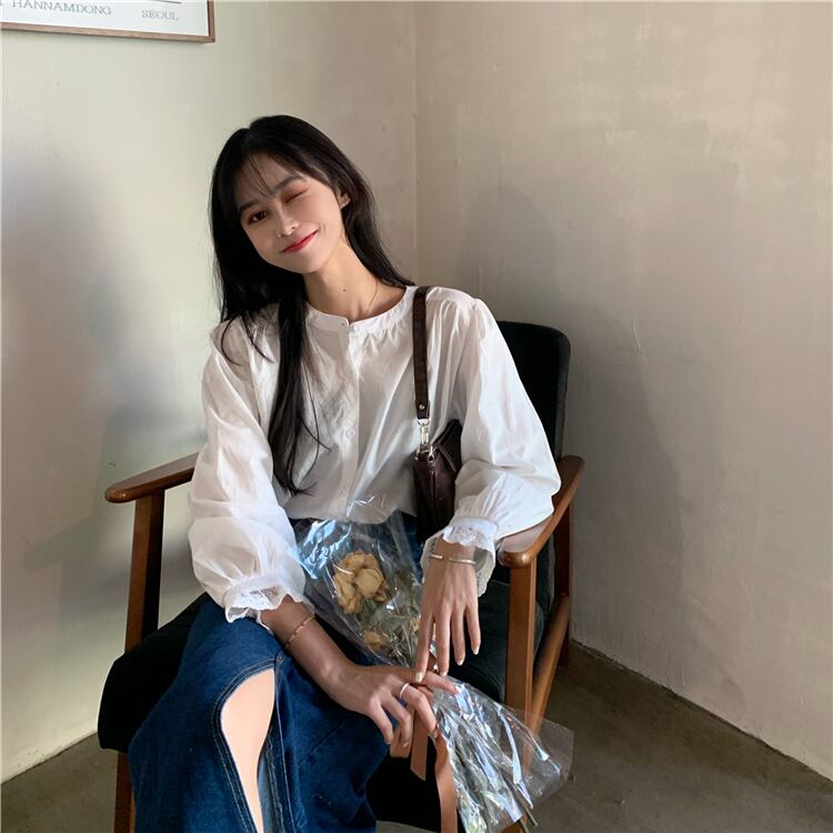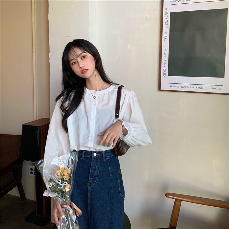 ホワイトシャツ女性デザインセンスニッチ2020年初秋新作ルーズラウンドネックシングルブレスト長袖シャツトレンド クレセントシティ97125703219