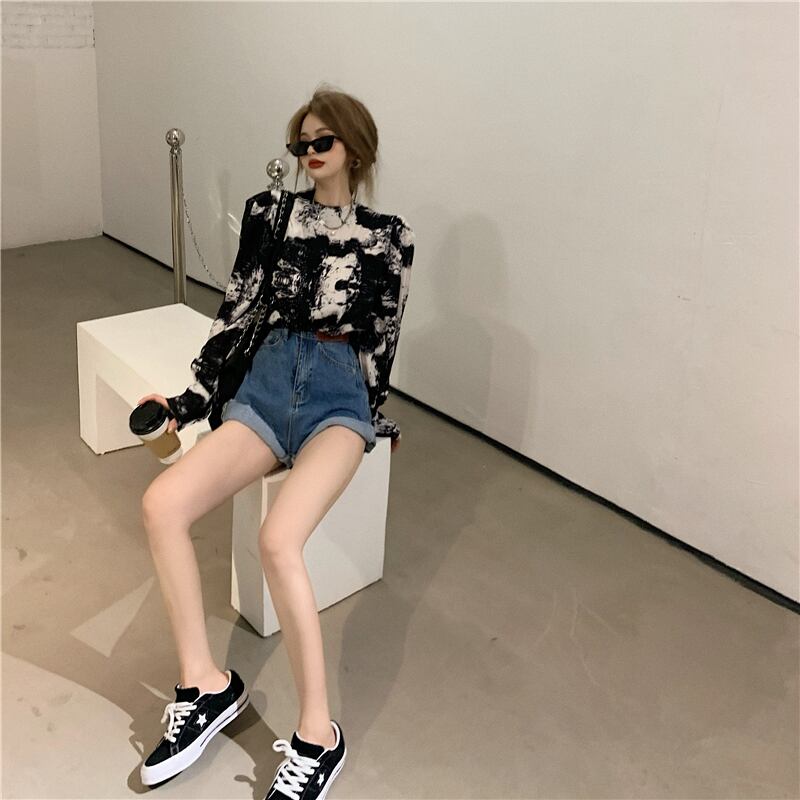 長袖シャツ女性デザインセンスニッチ2020年初秋新作インクプリント・染色ルーズラウンドネックプルオーバートップ クレセントシティ23288844418