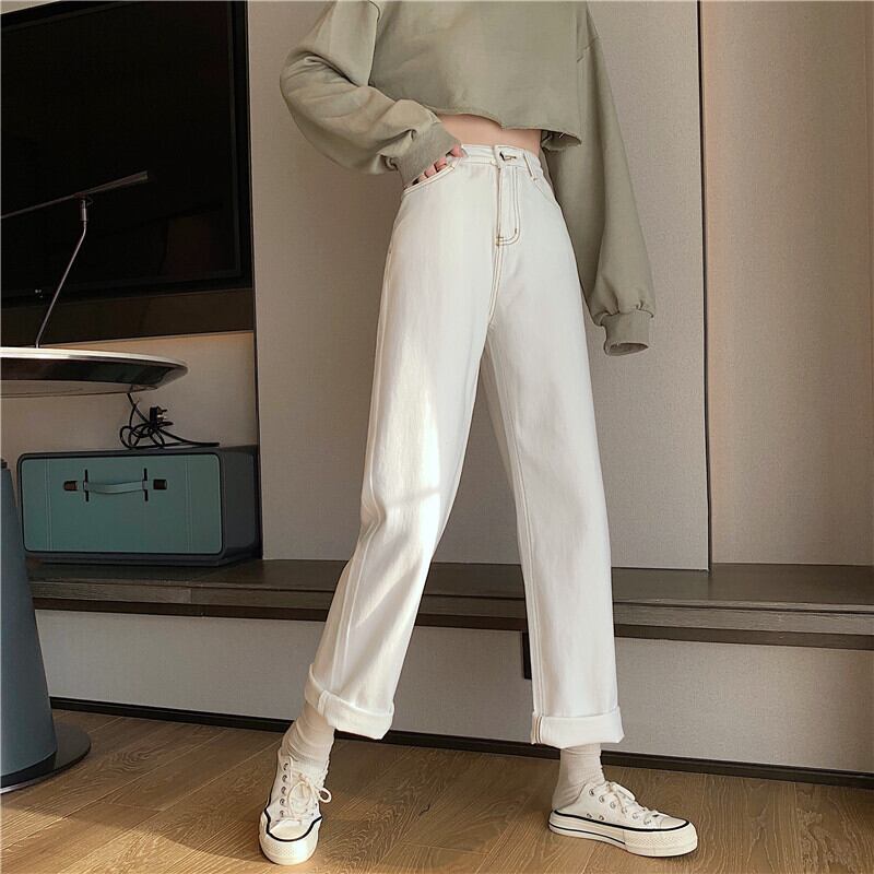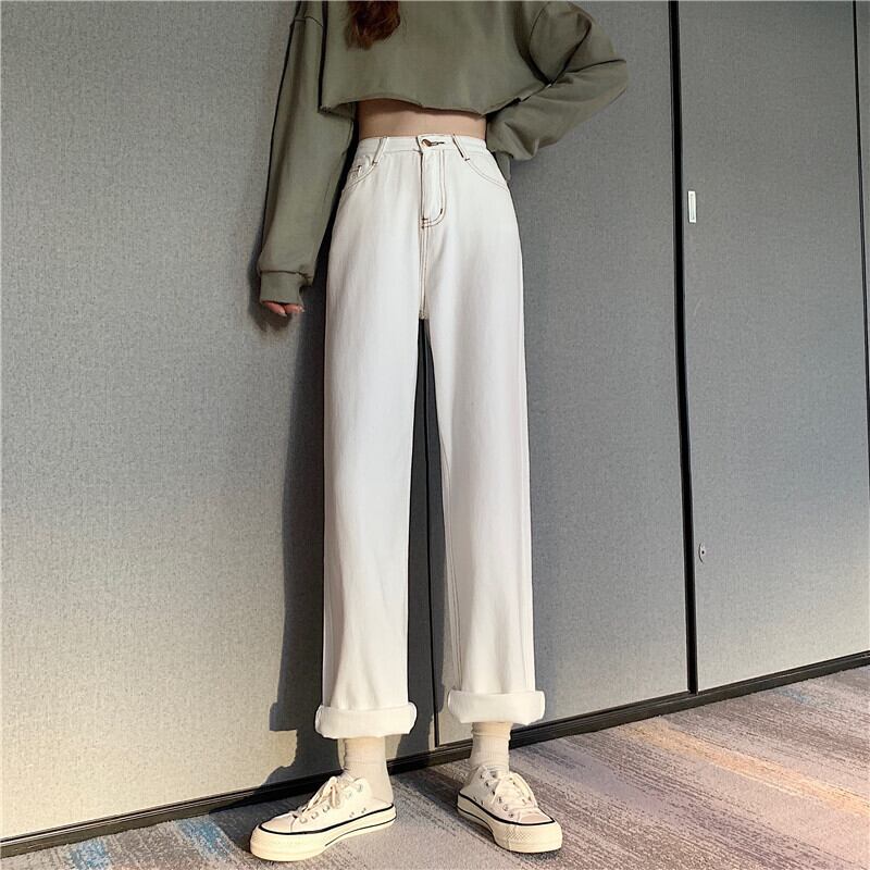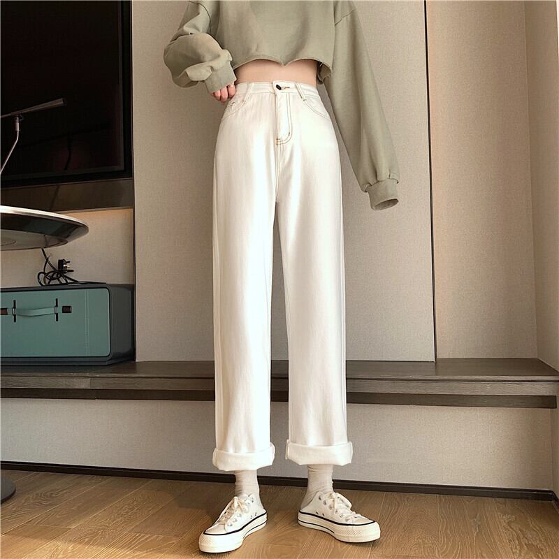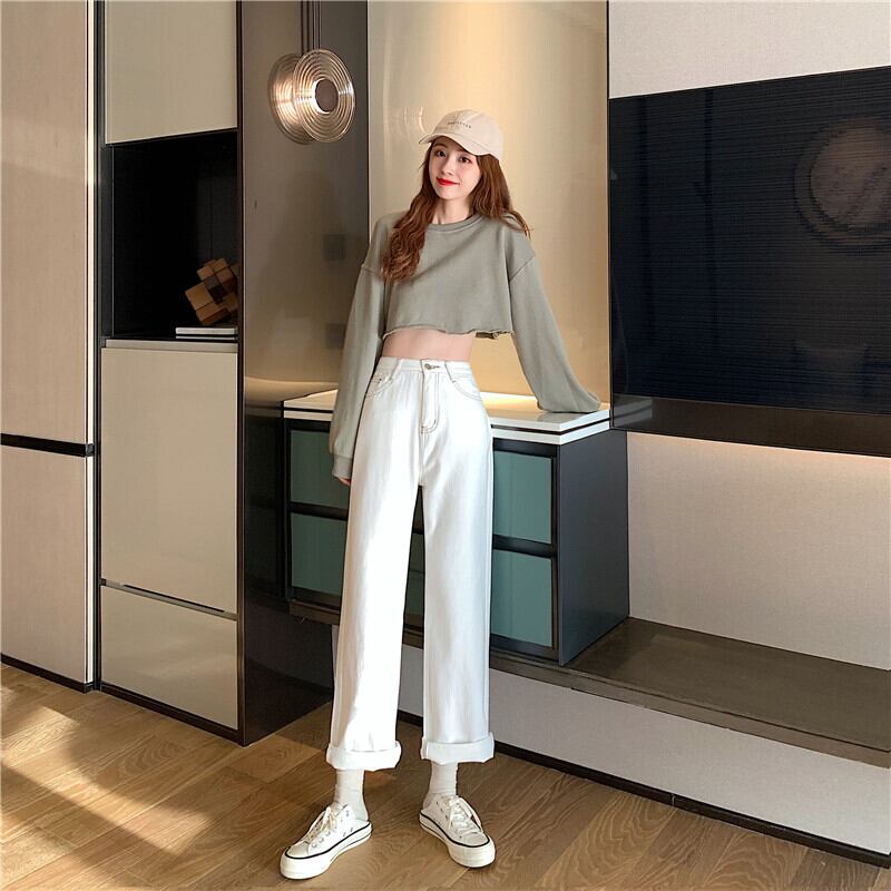 ホワイトハイウエストジーンズレディース2020年初秋新作オープンラインルーズ&シンストレートワイドレッグパンツのバージョン クレセントシティ23843334513
