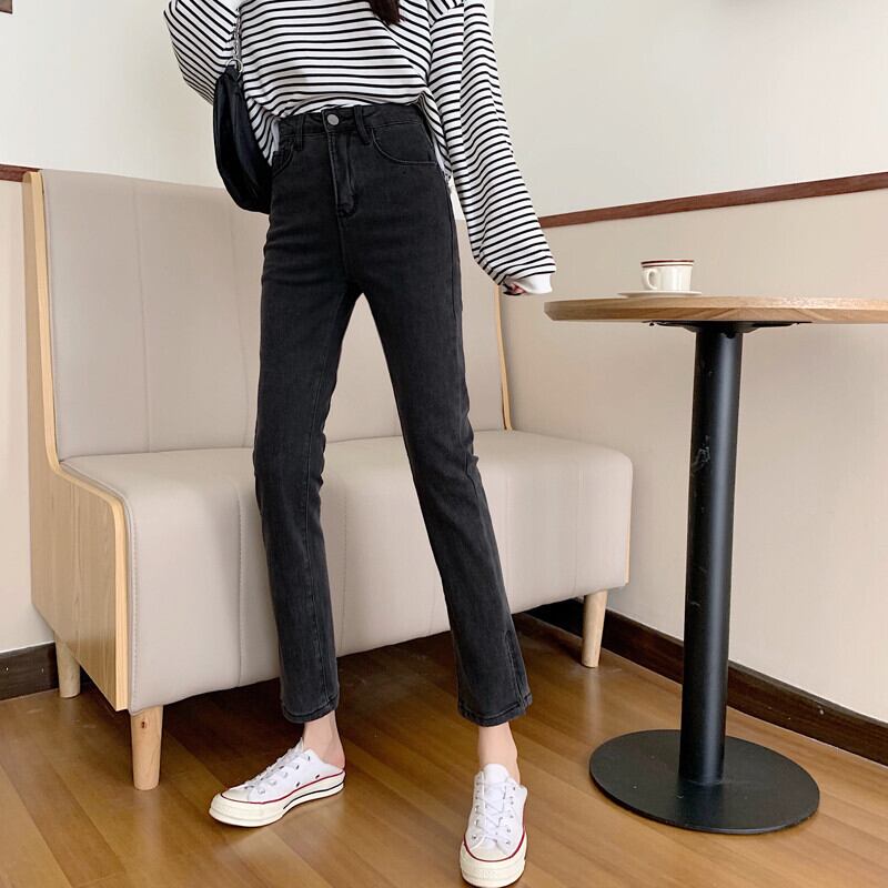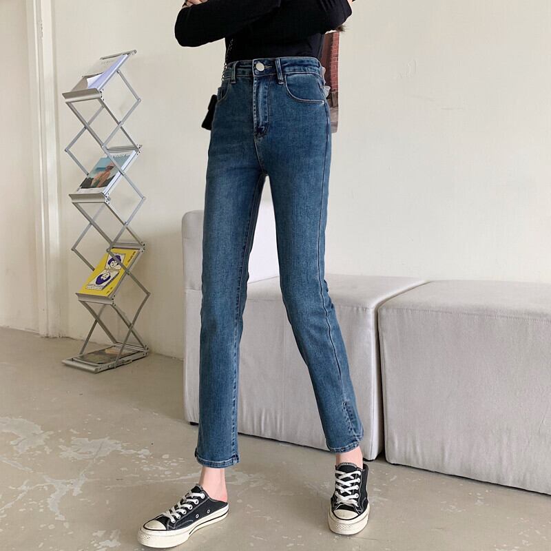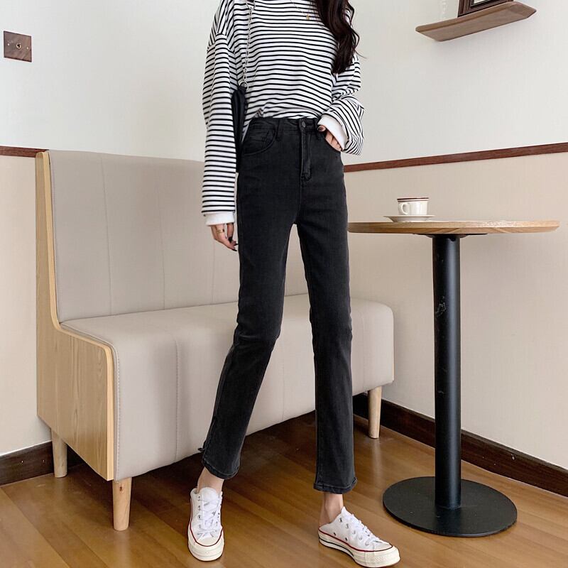 秋冬ハイウエストジーンズレディースストレッチ2020新バージョンのスモールスリムスリミングカジュアルストレートレッグパンツ クレセントシティ60279755240