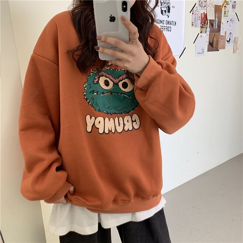 セーターの女性の2020年初秋バージョンの新しいプラスベルベットの厚みのある学生プリントカジュアルフード付きルーズ長袖トップトレンド クレセントシティ59623513579