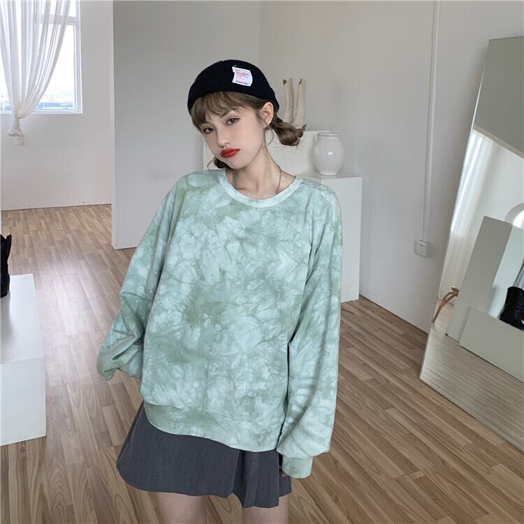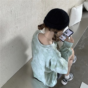 絞り染めミントグリーンセーターレディース2020年初秋新デザインセンスフロント&バックウェアルーズスプリットトップス クレセントシティ96889260456
